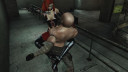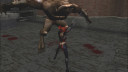 Кстати, о боевой системе. Она на редкость дубовая и вообще не обладает тактильно-визуальной отдачей. У Рейн есть стандартная атака парными клинками, пинок, прыжок, гибридные пистолеты, возможность попить крови разной степени эквилибристичности с разных комбо кнопками, и три типа спецспособностей, прокачивающихся по ходу игры. Пить противников можно почти всегда, если они не вооружены. Пополнение кровью идет небыстро, выглядит эротично, а заодно пополняет оружие дальнего боя, но совершенно незначительно. Дополнительно с победой над сильными противниками могут добавиться особые атаки, обладающие, правда, абсолютно неудобными комбинациями (тому садисту, кто придумал в таком слэшере с такими таймингами вешать удобную, но сильную круговую атаку на поворот стиком вокруг своей оси и удар — я бы повесил на карусель на 24 часа вниз головой). Все это дело анимировано кривовато: модельки проходят друг сквозь друга, коллизии плохо сочетаются друг с другом.