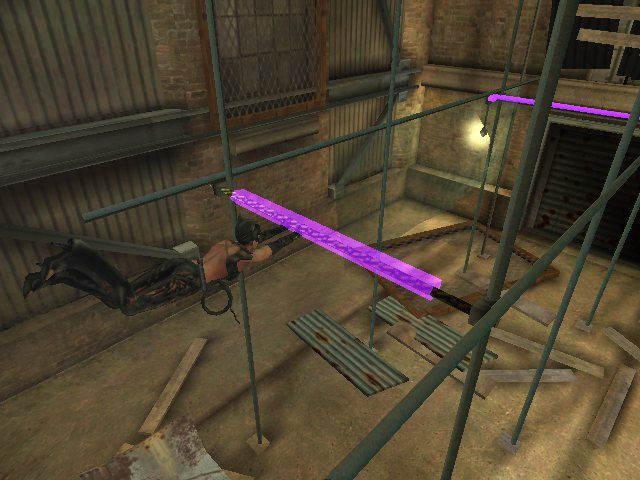 Графика, кстати, оставила приятное впечатление. На тот момент все выглядело неплохо: тени, свет, сама Кошка — все вполне симпатично. Правда, камера в игре живет своей жизнью, внезапно улетая куда-то в сторону в моменты передвижений. Не очень удобное решение, но, с другой стороны, иной вид на героиню не позволял бы наслаждаться ее пируэтами где-нибудь под потолком здания.