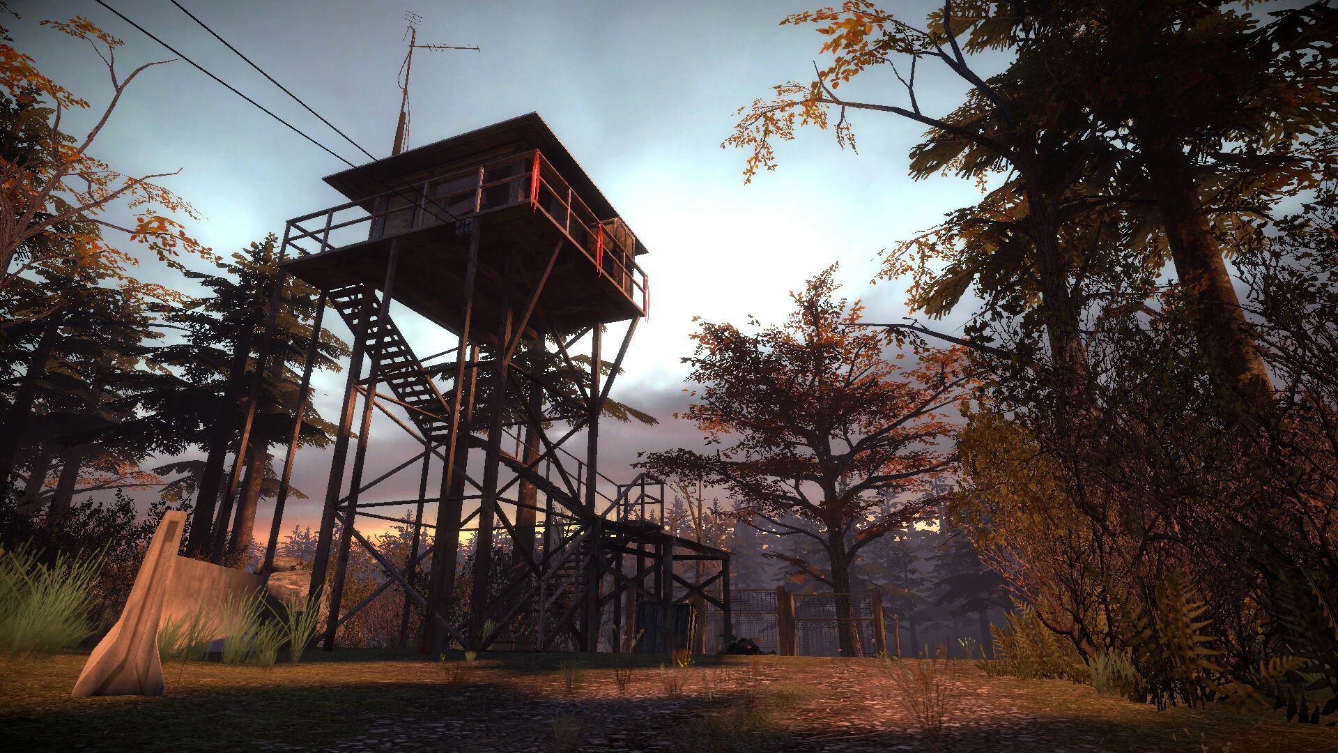 Что касается локаций, то все локации сделаны в одном и том же стиле – осенний лес где-то вдалеке от Сити-17. Более того, Сити-17 или какой-нибудь другой город тут вообще не чувствуется. В основном мы будем пробираться либо через лесные тропинки либо попадать на небольшие поляны, на которых какие-то силы установили научные палатки (честно сказать, эту идею я не понял, т.е. откуда это всё взялось и какое отношение к этому имеют бандиты, которые их оккупировали). В целом, все локации сделаны очень качественно, а собственная музыка, создаёт синергетический эффект (музыка классической Half-Life 2 тут явно не подходит). Да, особой вариативности в самих локациях нет, но тем самым авторы как бы подчёркивают место действия – лесные массивы вдали от городской жизни – и их огромные просторы. Это правильное решение, ибо если в какой-то момент мы бы оказались в большом городе, то нарушилась бы гармония окружающего действия. Видно, что авторы потратили много сил и времени на создание этого осеннего леса, и он получился действительно замечательным. В дальнейшем разработчикам нужно лишь предлагать варианты его развития (даже лесная гуща не может быть монотонная и однообразная, а тут у нас всё же присутствуют островки человеческого присутствия, как те же дозорные вышки или электростанции скрытые в лесу).