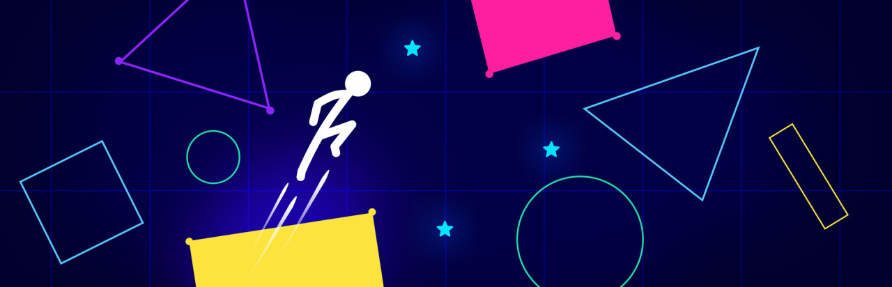 Раскачивайтесь, прыгайте, переворачивайтесь и скользите телом стикмена от одной неоновой фигуры к другой, чтобы заставить их светиться и загораться