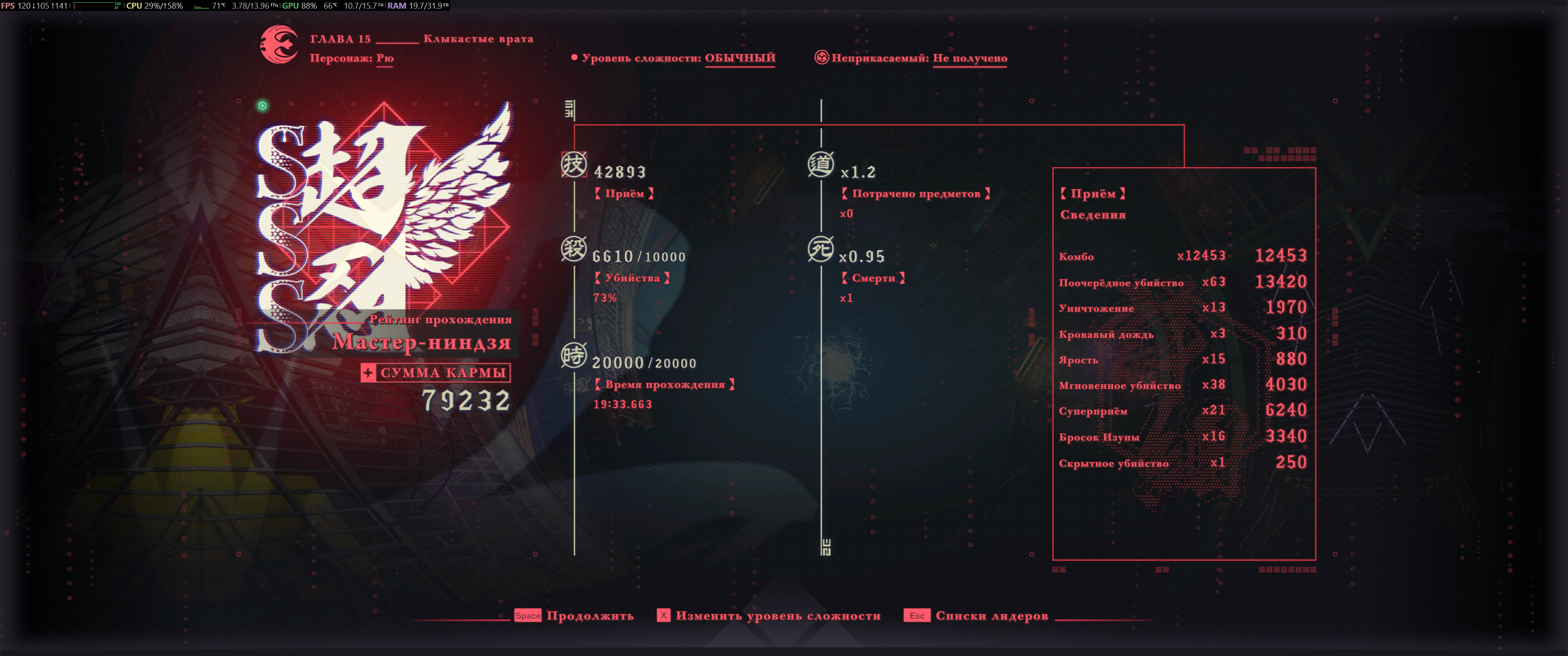 Если я и называл выше какие-то минусы, то они для меня некритичны. Основной негативный момент - сюжетка Рю. Ок, миссий за него мало, я это принимаю, но они реально повторили за Capcom, засунув Хаябусу в уже пройденные локации и заставив нас повторно сражаться с уже убитыми боссами, ещё и его приёмы собираем в сундуках. Одним словом, халтура. Спасибо, что кубик с рефайтами не додумались добавить. К счастью, к нашему старому знакомому можно будет присоединиться при перепрохождении любых миссий, да и дополнительные испытания никто не отменял. Предположу по наличию DLC, что у разрабов не хватило времени и ресурсов для создания нормальной сюжетки второго героя.