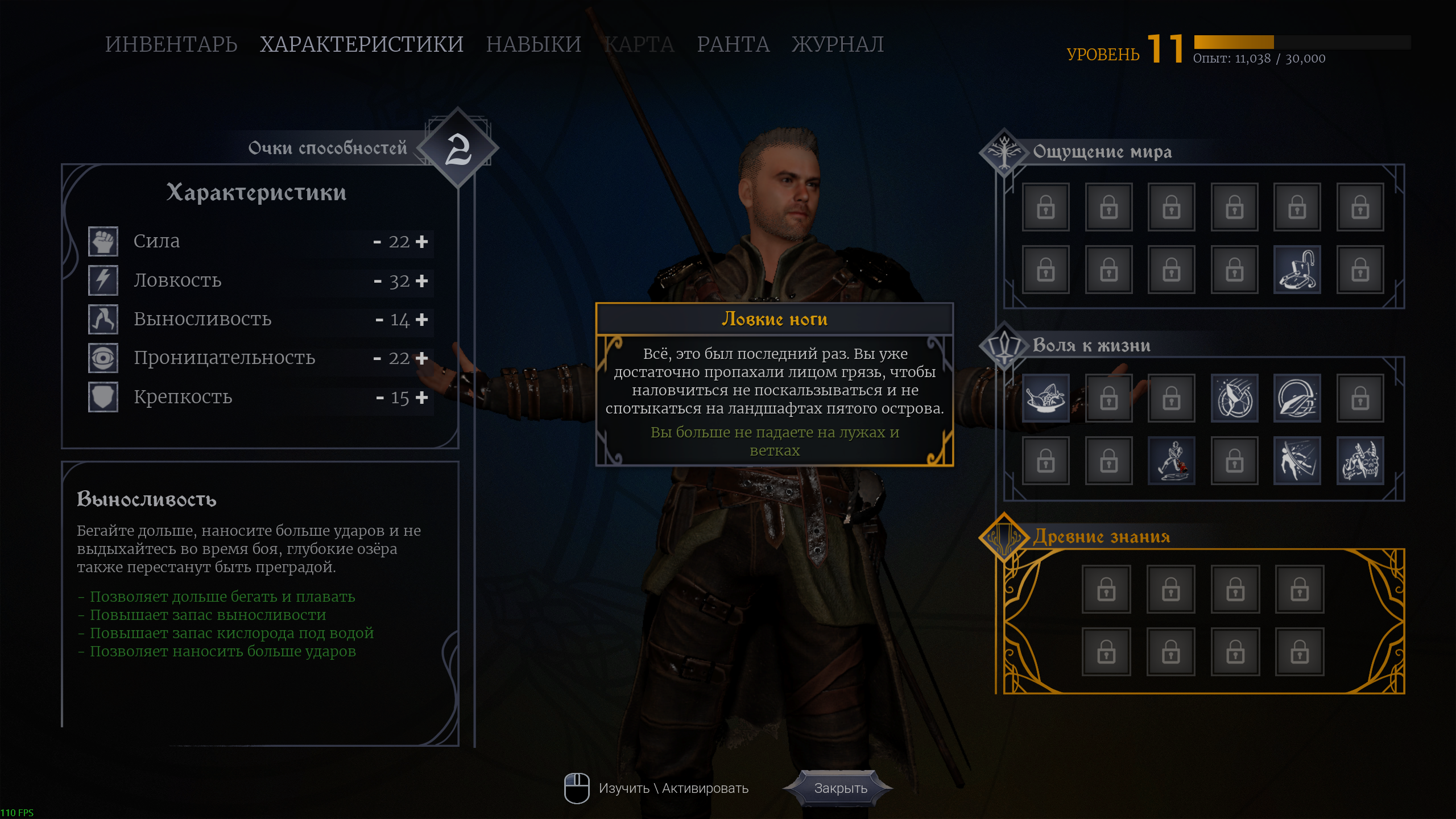 б) если раскачана ловкость забраться на стену по лианам