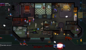 Так и получается, что в рамках выбранной концепции Party Hard просто на просто не работает. Уровни выстроены так, что планирование, как в хитмане, почти невозможно, импровизация осложняется режущим глаз пиксельартом, а музыка не дает поймать состояние потока и кайфовать от устроенной резни. Еще, кстати, тут есть сюжет, выстроенный как диалог детектива с кем-то со стороны, то ли другим детективом, то ли еще кем-то (в конце есть твист относительно этого, но он читается почти в самом начале). Эта легкая инъекция нарратива могла бы все свести к несерьезной шутке, добавив игре легкости и ненавязчивости, но сюжет во всю старается давить на мрачный нуар, что диссонирует с остальной стилистикой яркой клубной жизни и кровавого насилия.