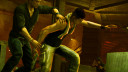Стрельба открывается ближе к середине игры и не тянет на себя одеяло. Огнестрел используется исключительно в крупных сюжетных перестрелках и недоступен в открытом мире (кроме пары недиегетических исключений). Если полетели пули, умрет пара десятков человек и прольются литры ненужной крови. Ощущения от стрельбы… приемлемые. Прицельное перекрестие большое, но пули магнитятся к голове и ставят легкие хедшоты с мгновенной смертью. Перескакивание через укрытие включает имбовое слоумо, где магнитные пули истребляют толпу одним магазином. За счет простоты имеется небольшой кайф и отсутствует негатив