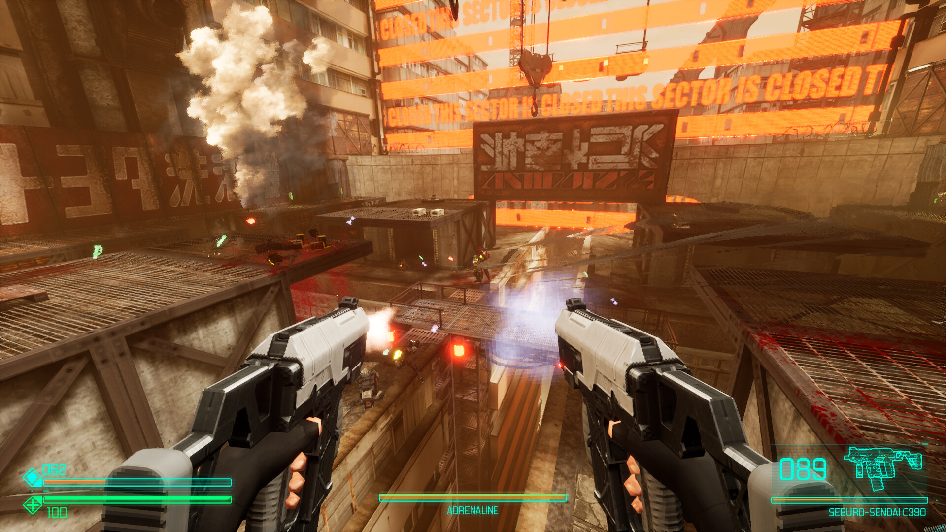 Смотреть всеПо первому акту вам может показаться, что игра в целом нетрудная. Уровней сложности тут нет, в первом акте нам наваливают мало противников, особо трудностей нет. Но зато два последующих акта дают по полной прочувствовать игру и все её особенности. У нас есть неплохой арсенал оружия, у которого не очень много патронов. Противники плотные, но имеют слабые места, которые видно только при включённом адреналине (местном слоу-мо). По сути, можно им не пользоваться, но тогда у вас кончатся патроны, ведь если мы убиваем врага в слабое место, то из него сыпется здоровье, патроны и заряд адреналина. Или же вам необходимо запомнить слабое место и стрелять в него. Стрелять в постоянном движении может быть не очень удобно, поэтому замедление времени хорошо помогает. Врагов много и у каждого уникальное поведение. Если обычный штурмовик стреляет издалека и его слабое место голова и ранец, то есть специальный отряд невидимок, у которых тоже слабое место голова, но они бьют вблизи и телепортируются, чтобы внезапно напасть. Ещё есть штурмовики с дробовиками, которые заметно толще обычных, подходят близко для выстрела. Также есть летающие дроны, тяжёлые мехи с гранатомётом или пулемётом, роботы-берсеркеры, которые тупо бегут на нас. И ещё стационарные турели, огромное летающее судно и так далее... В общем, противников немало и все они интересные. Оружие стандартное, пистолеты, дробовик, гранатомёт, рпг, пулемёт и так далее. Ещё у нас есть атака катаной. Когда у врагов мало здоровья, то они впадают в ошеломление и их можно добить катаной, примерно как в DOOM, но без специальных анимаций, что жалко. Настреляться вдоволь можно, но надо не забывать про восполнение патронов. Они лежат на локации, но чаще всего это мало, поэтому следует убивать противников, стреляя в слабые места. Ну и к слову про динамику игры, если вы попадаете на большую арену с врагами, то буквально 2-3 секунды стояния на месте превратят вас в трупа. Игра про движение, и быстрое принятие решений. В третьем акте настоящий DOOM 2016 начинается. Под конец я решил упомянуть, что мы не просто ходим по дороге. Мы умеем бегать по стенам и быстро скользить по земле. И это сделано настолько удобно и приятно, что вызывает неподдельный восторг! Если освоить все фишки передвижения по типу отскоков от стен, усиленный прыжок выстрелом из дробовика, то игра приобретает максимально возможную динамику! Вот ни разу мне не было скучно, всё прохождение чувствуешь себя настоящей машиной для убийства, особенно комбинируя разное оружие для максимально эффективной расправы над врагами, при этом в любой момент включая и выключая замедление времени одной кнопкой (пкм)! Игра с геймплейной точки зрения отточена до идеала.