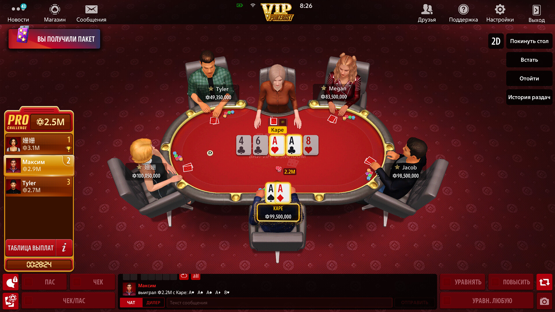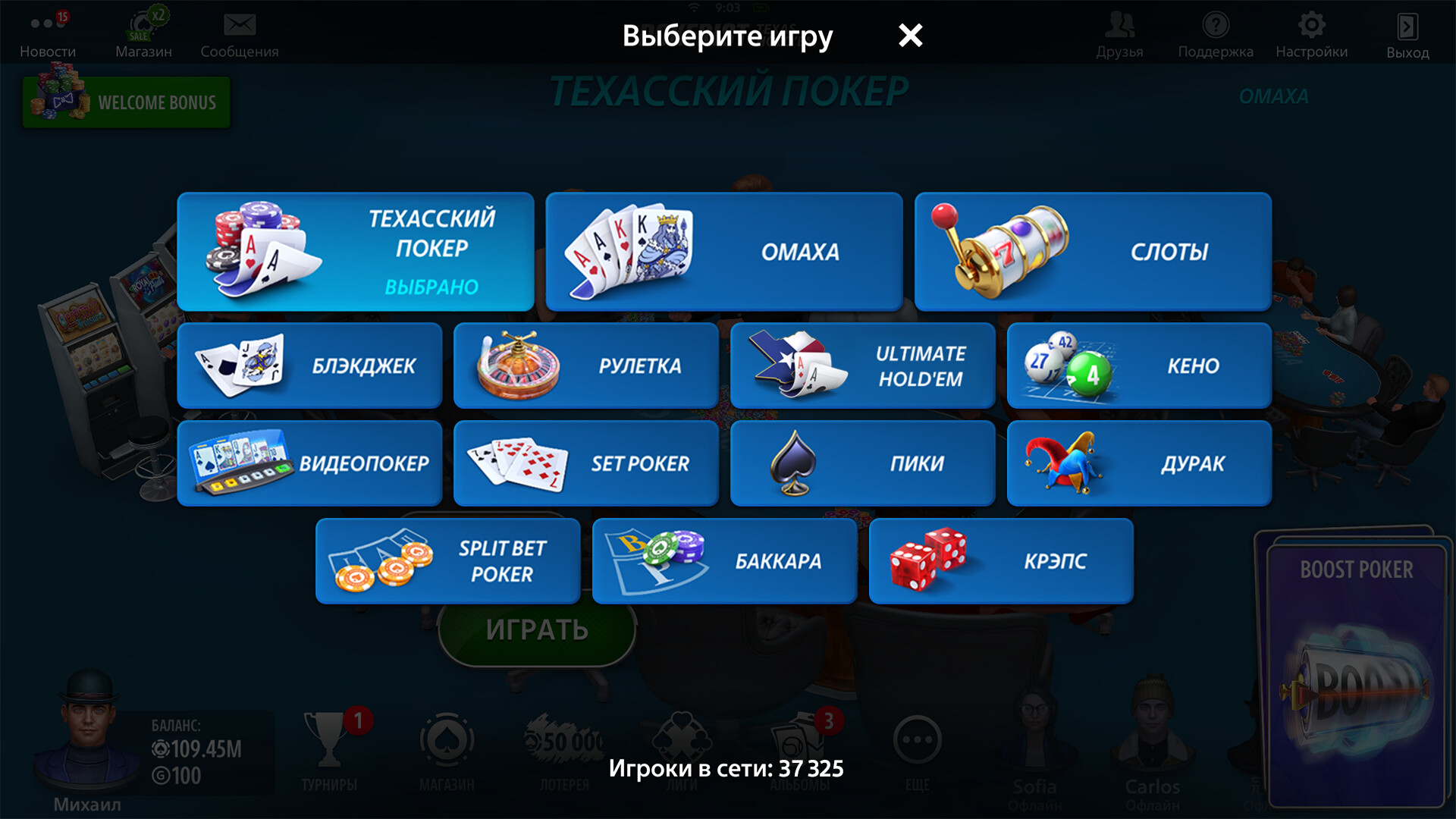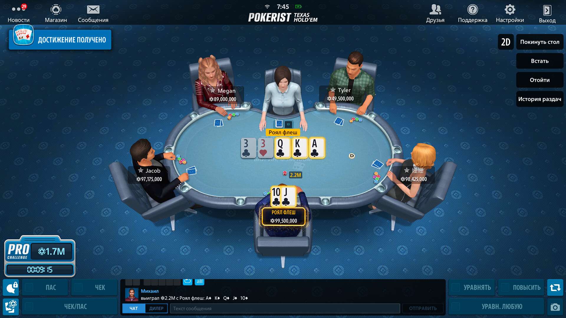 Попробуйте легендарный Техасский Покер! Окунитесь в настоящую атмосферу казино и насладитесь великолепной 3D-графикой. Погрузитесь в мир азарта, бросьте вызов другим игрокам и докажите, что вы настоящий победитель!