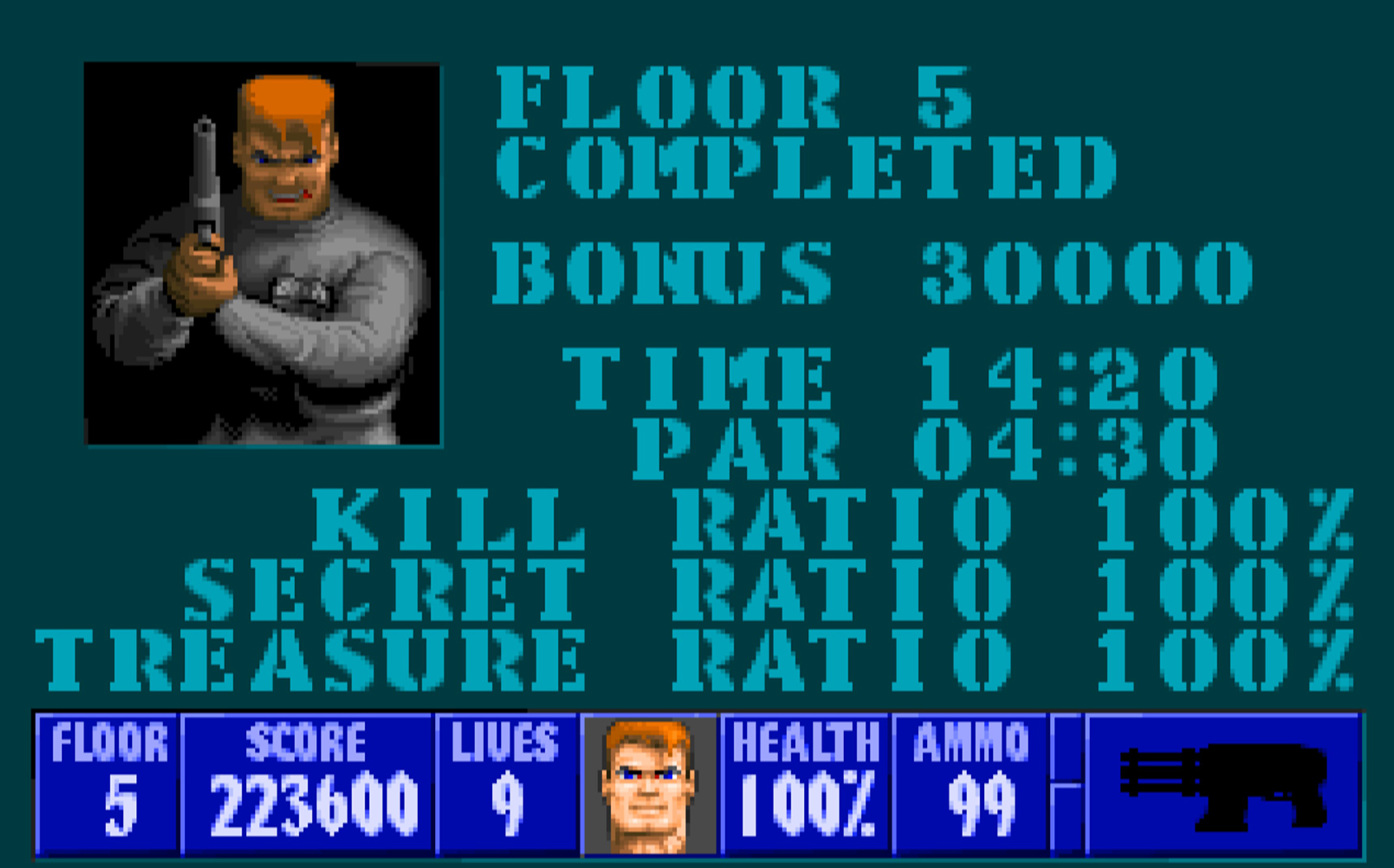 Одолев все шесть эпизодов оригинального Wolfenstein 3D, хочу заверить, что до сих пор, спустя уже кучу лет, всё ещё интересно играть и проходить. Раньше мне прохождение не давалось. Я застревал на каком-то уровне с дико сложным лабиринтом и забрасывал игру. Пройдя же сейчас, могу сказать, что игра в меру сложна, и на этот раз всё проходилось довольно просто.