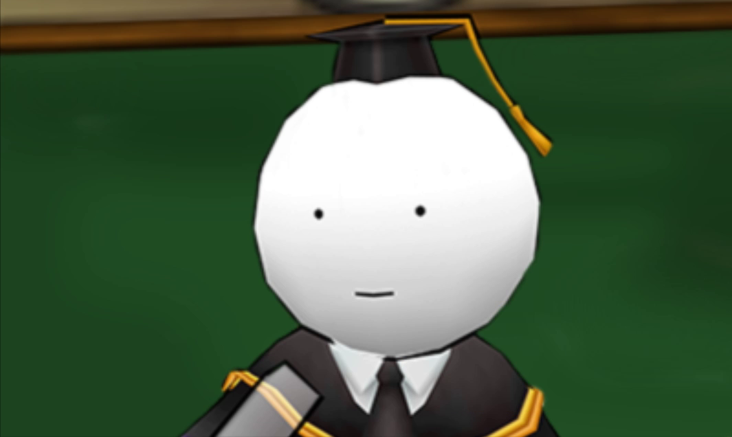 К самому произведению, на чём, собственно, игра основывается, я отношусь (аккуратно подбираю слова) прохладно. Оно вполне прикалывало поначалу, да и название у него весьма интригующее. Увы, тайтл оказался совершенно не для меня, отчего ушла она в дроп. Несмотря на это, личность Коро-сэнсэя мне приятна. Персонаж вышел не простым, а, чёрт возьми, он выглядит как грёбаный осьминог. При этом завязка истории крута. Я не встречал ранее сюжета, где классу учеников всего-то и нужно, что уничтожить учителя-осьминога (не спрашивайте, почему это существо решило стать учителем) за один год, или в конце он уничтожит Землю, как ранее проделал аналогичное с Луной.