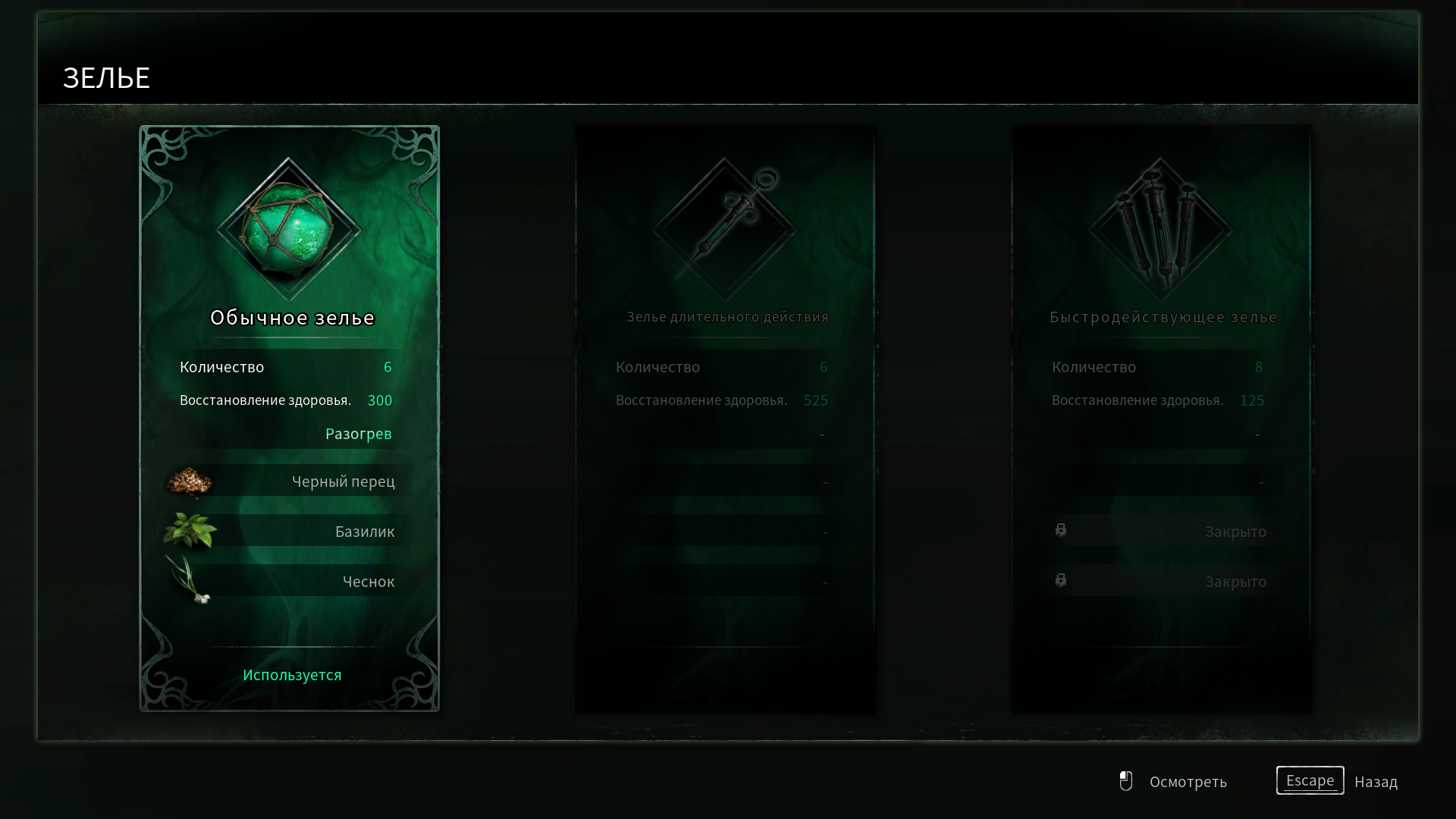 Одновременно плюсом и минусом является возможность замешивать в хилки различные травы, на манер чудесной фляги из Elden Ring. Всего рецептов восемь, проблема заключается в том, что далеко не все ингредиенты лежат где-то на локациях, многие приходится гриндить, а это, сами понимаете, не очень весело.