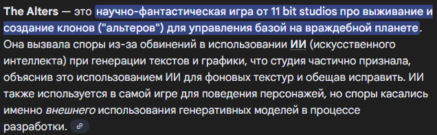 Игры, созданные с помощью ИИ или использующие AI технологии: дизайн, арт, озвучка, поведение NPC, перевод, т.д. (с плашкой AI в Steam или если AI был подтвержден разработчиками).