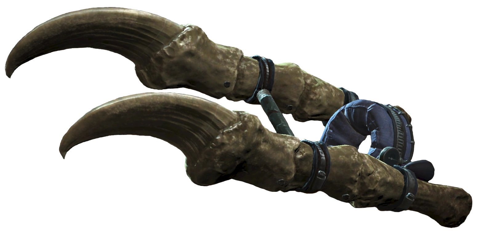 В The Pitt и Fallout 4 появлялось оружие "перчатка когтя смерти". Кажется, они вполне подходят под определение