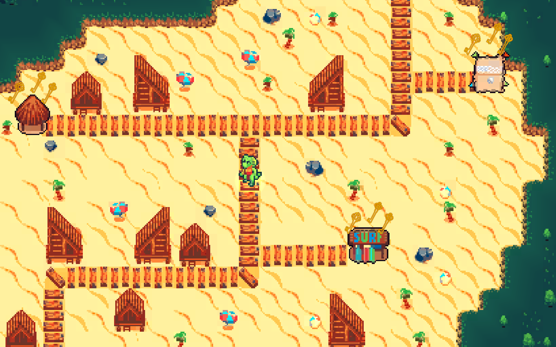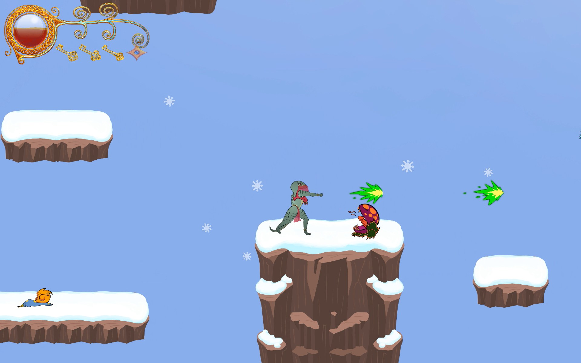 Хотя на фоне общей невзрачности малоподвижная рептилия смотрится достаточно органично. Да, всё верно, слабо выглядит и структура уровней, представляющих собой ленивое нагромождение платформ. Один взгляд на них и хочется быстро пробежать, дабы не останавливаться на них. Увы, приходится оставаться, искать и собирать ключи.