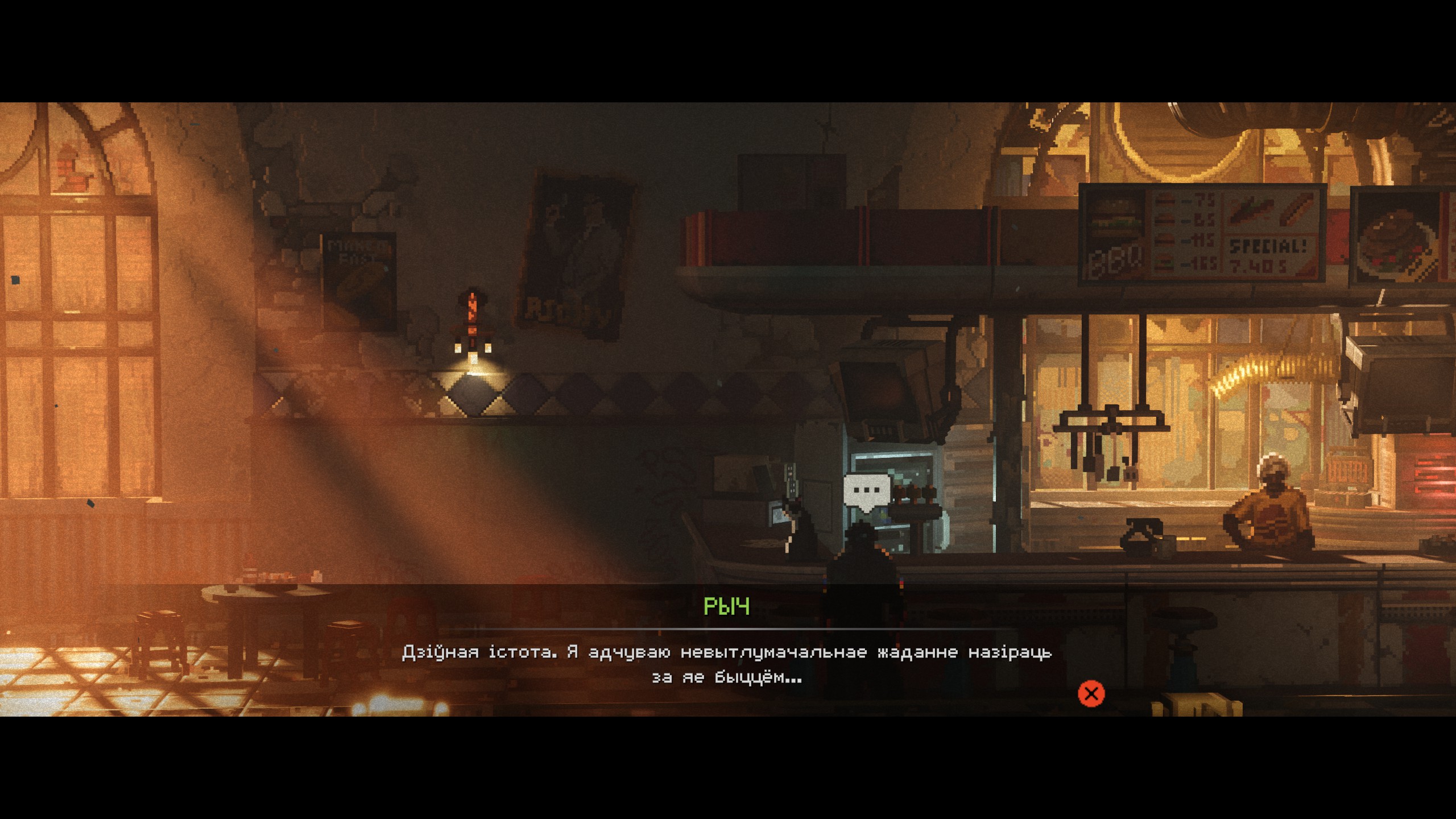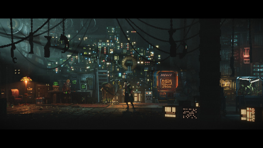 Візуальная частка — рэтрафутурызм у піксель-арце. Відавочна, што гульню рабілі мастакі: арт, святло, кінематаграфічная камера, дэталізаваныя фоны — усё на вышэйшым узроўні. Вока радуецца.