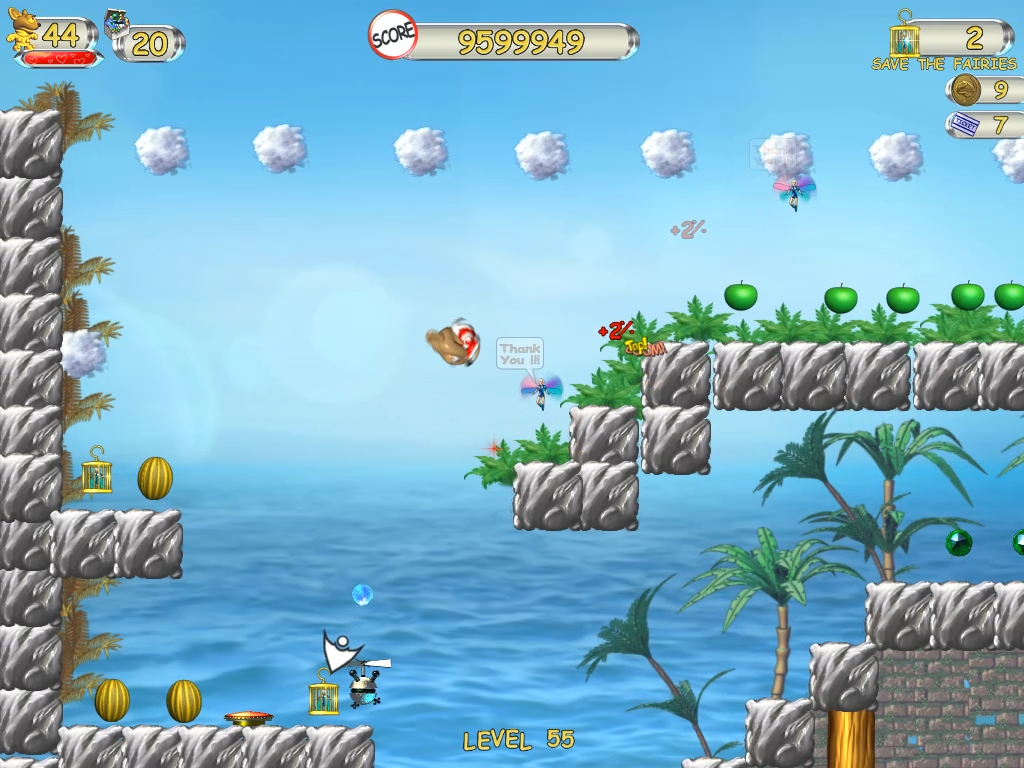 В плане геймплея это простенький платформер, прыгаем, бегаем, собираем предметы, чтобы очки получить, спасаем фей, путём ломания клеток, в которых они находятся. Уничтожаем врагов мы как Марио, сами враги в основном просто ходят/летают по горизонтали или вертикали, в какой-то момент они ещё учатся стрелять замораживающим шаром. Можно грузить подбирать ящики и бросать их в пришельцев.