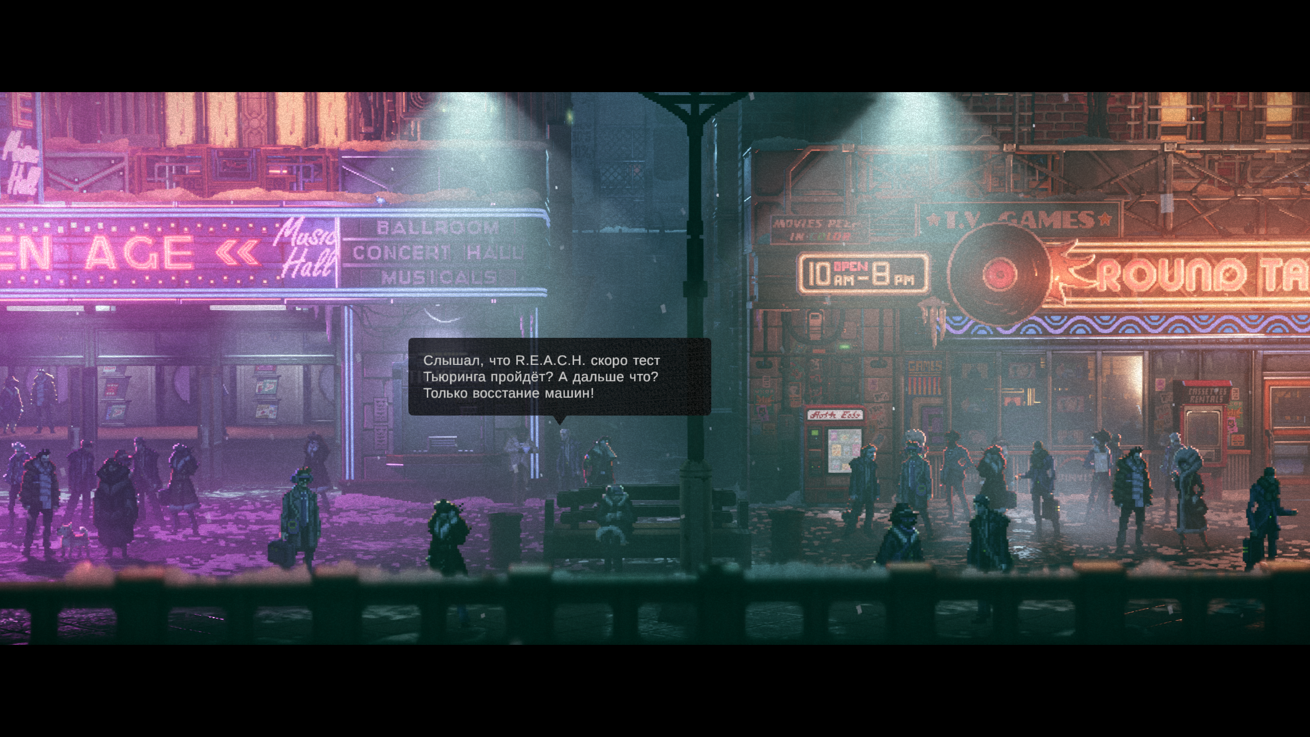 Візуальная частка — рэтрафутурызм у піксель-арце. Відавочна, што гульню рабілі мастакі: арт, святло, кінематаграфічная камера, дэталізаваныя фоны — усё на вышэйшым узроўні. Вока радуецца.