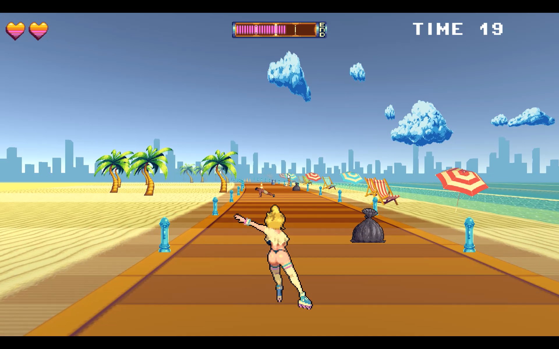 Визуал в целом нормальный, собранный из анимэ ассетов, но чертовски отдаёт атмосферой, не меньше упоротой «Natsuiro High School: Seishun Hakusho». Любопытно, что разработчики, сделавшие «Natsuiro High School: Seishun Hakusho» когда-то в рамках Simple 2000 под номером 50 создали «Demolition Girl». В центре событий — гигантская девушка, которую нужно остановить. Девоньки прекрасны, особенно ведьма в чёрных одеждах.
