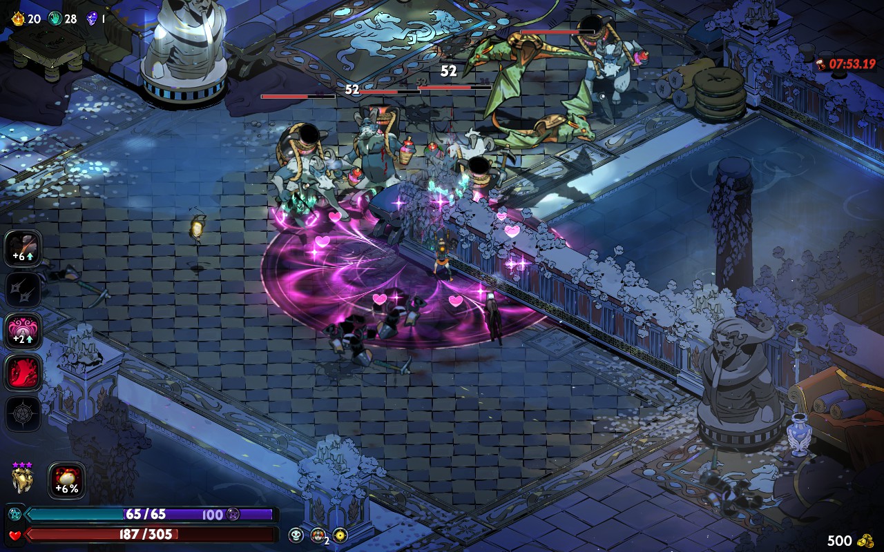 Начнём с главного, то что в игре всегда было хорошо. Сама игра, рогалик, билдостроение и прочее. Оно хорошее. Оно крайне разнообразное, имеет много направлений. Играется всё отзывчиво, сочно. Ситуации игра делает интересные. Но при этом у игры есть проблемы с разнообразием самого геймплея, как по мне. Способов играть много, но всё это по итогу скатывается в рутину. Вроде бы есть два пути, есть много локаций, но после того как ты победил финального босса каждой из локаций, интерес к прохождению резко падает. А тебе надо убить минимум 5 раз верхнего босса, и 8 раз нижнего. И все эти повторные прохождения были мучениям. Ноль новых врагов, ноль новых приёмов у боссов. В первой части такое не ощущалось. Да и боссы там менялись. А тут всё слишком однообразно после того, как ты увидел весь контент в плане оппонентов. Ну и после первой победы я уже ни разу не проиграл в забеге. Видимо и со сложностью есть проблемы.
