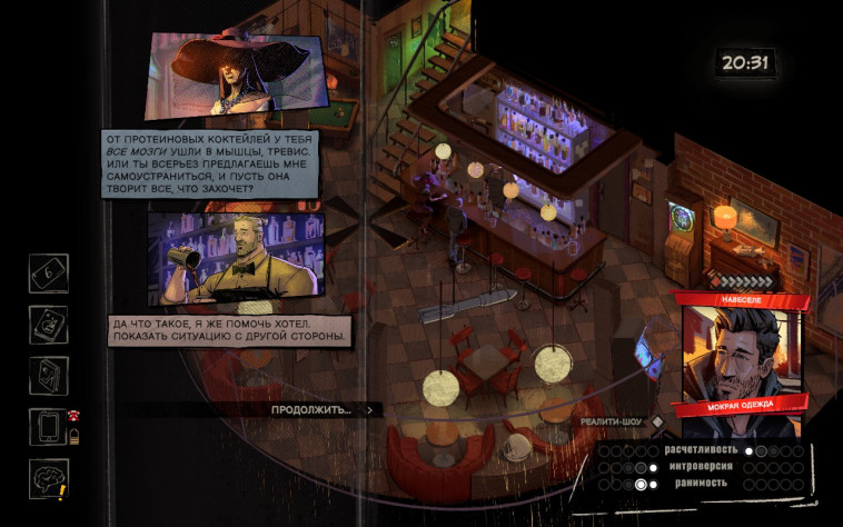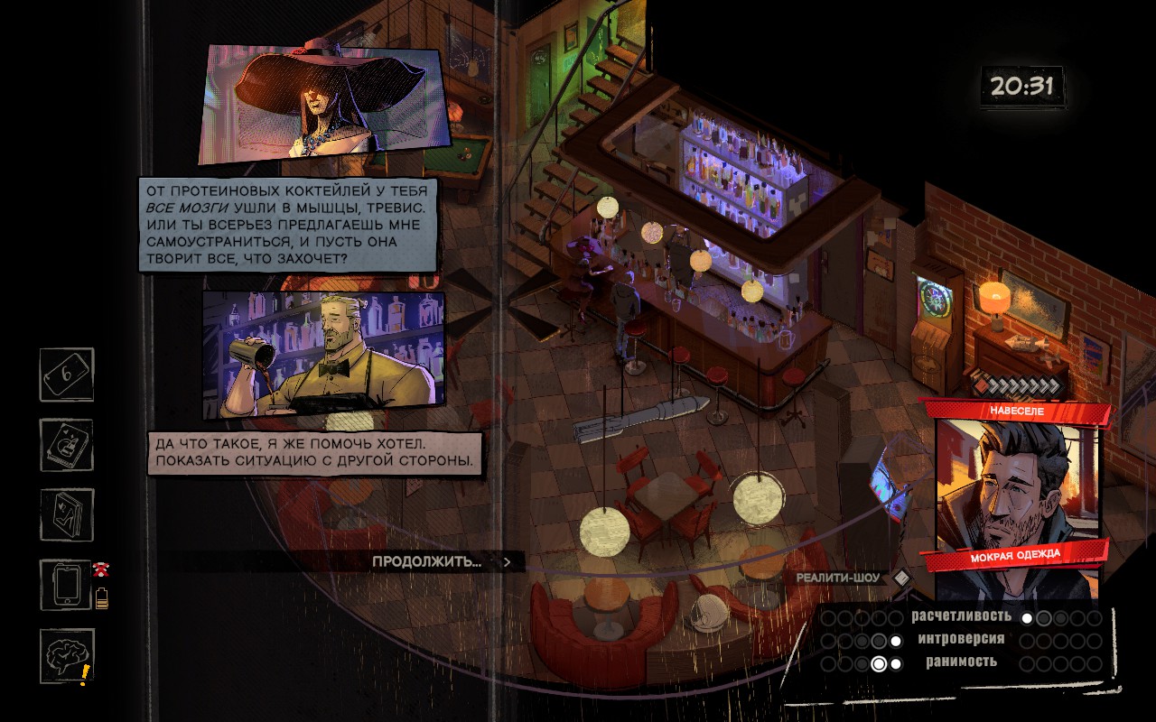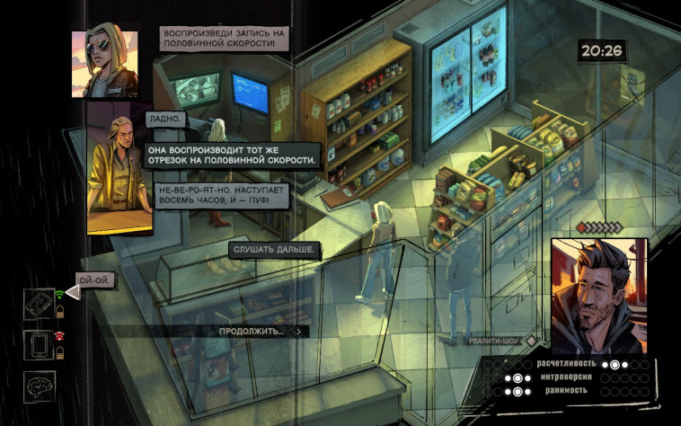 По жанру, в отличии от источника вдохновения, это не РПГ, а обычный квест. Почти линейный, без вариативности и выборов. Не смотря на механику временной петли в 47 минут. Сама по себе механически игра немного деревянная, но можно пережить. Да и система с мысленной картой, в которой мы распутываем детективный клубок выглядит интересно. Но в процессе игры и получения вполне линейной истории есть одна проблема. Она невероятно затянута. Первые часа 3-4 всё хорошо. Но потом начинается сегмент, когда тебе каждый раз надо ехать в дальний край карты, смотреть 3 экрана загрузки, чтобы иметь 5 минут на какие-то действия. Это невероятно утомляет. При том иногда игра пропускает езду, иногда сразу телепортирует куда надо. Но не тут. И в целом оно укладывается в идею игры об усталости героя от нахождения в петле, но чтобы показать это, не обязательно делать уставшим и утомлённым самого игрока. У людей есть такая вещь как эмпатия, и мы можем представить чувство без его испытывания на себе. Эта середина портит всё впечатление.