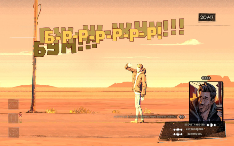 Вот с чем игра справляется нормально, это с визуалом и духом места. Захолустный городок. Где все друг друга знают. Где вместе в стык идут три эпохи и конфликты разных временных эпох. Это прикольно. Визуальный стиль из Disco Elysium тоже хорошо сделан. Смотрится игра хорошо. Музыка тут единственное не особо хорошо. Естественно до самого Диско и близко не дотягивает. Тут просто что-то есть на фоне, но не более того. И вроде даже есть сцена сюжетная с музыкой в её основе, но она и там никакая.