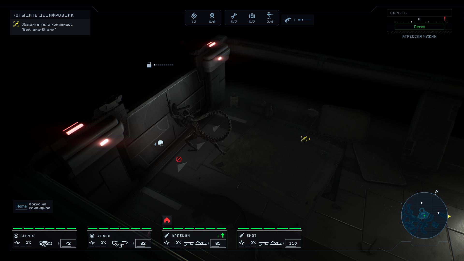Да стелс, он практически обязателен потому что за его не соблюдение игра будет штрафовать игрока повышением сложности локации, парирую сразу аругмент "Вернись на базу и сложность спадет" нет не спадет, потому что в игре присутствует глобальная сложность локаций которая растет с каждым днем, а возращение на базу сжирает день (обычно 6 дней до повышение сложности общей), вернуться на базу для сброса сложности локации работает СТРОГо на начальных уровнях 1-3, потом так делать просто суицид. С этим разобрались, так что с стелсом не так ? я да лично Я абсолютно уверен что он был добавлен в игру в последний момент, как я пришел к такому выводу ?Давайте я приведу метафоруПредставьте что вы любите РПГ игры про фэнтези средневековье, и вот вы решили поиграть в новую игру такую и в игре вы узнаёте что можете играть 1 из 2 классов, это маг и рыцарь, конечно же понимая что МАГ чисто теоретически будет интереснее заезженного рыцаря вы выбирайте Мага НО! как оказалось у Мага всего 1 перк это огненный шар, и вы всю млять игру за мага можете швыряться только этим перком и все, а вот у рыцаря ситуация противоположная, у него мало того что перков в 20 раз больше так еще и шмотки у него лучше чем у мага и геймплей за него интереснее по понятным причинам.Тут абсолютно тоже самое, игра которая заставляет играть по стелсу иначе она бьёт игрока палкой по голове имеет всего 1 ! 1 !!! перк на стелс ! и все, да есть всякие пассивки которые получаются по ходу игры но они не делают картину лучше, и при этом этот перк абсолютно обязателен так как без него игра становится не играбельной от слова совсем. Чувствуйте чем пахнет ? пахнет в последний момент засунутой механикой в игру, и помимо этого на уровнях разбросано ну просто какое то не померенное количество патронов для оружия морпехов, как игра которая ставит своим основным правилом СТЕЛС большую часть времени может позволять себе игроку разживаться патронами на каждому иглу ? а потому что дизайнили игру не под стелс и это видно и по поведению чужих, чужие даже и не притворяются что не знают о том что морпехи прячутся, они просто тупо в любой ситуации идут к вам на пролом, баг это или фича я не знаю, но факт есть факт в 80% случаях не вы заруините себе стелс а игра которая по считала что ты на стелсился и пора повышать сложность искусственно. (Вдумойтесь,в игре суммарно больше 30 перков и 29 из них боевые для открытого сражения когда игра настаивает на стелсе это же абсурд)