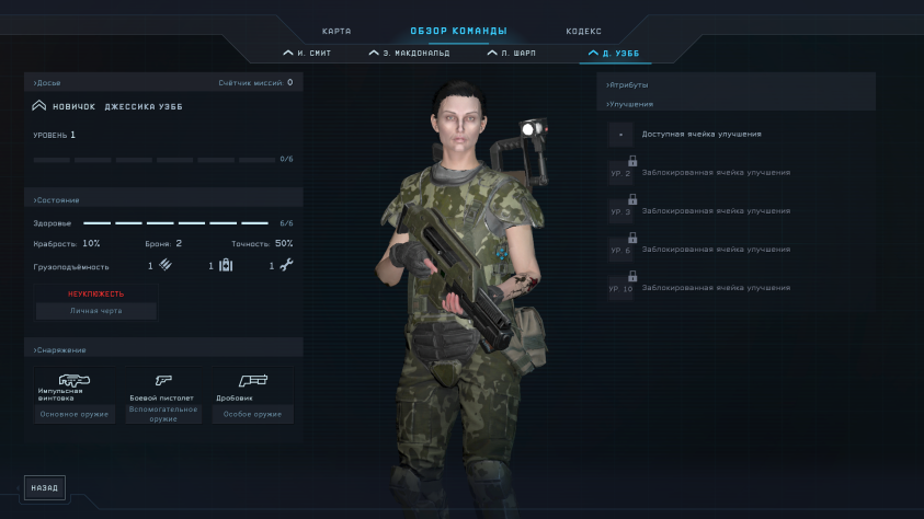 Что у нас в этой игре ? все новобранцы морпехи абсолютно одинаковые по статам ( о характере морпехов чуть позже), мало того что они одинаковые по статам что уже гробит реиграбельность и долю возможного МНОЮ Не полученного удовольствия от игры, так еще и с повышением звания у солдата НИЧЕГО ПАССИВНО не растет, вся прокачка морпеха это строго решение игрока какой перк ему выбрать (про перки чуть позже тоже) и что купить за припасы ему типо прицела там подсумки и тд, мне надо говорить какой это сюр? В xcom enemy unknown ты увидев что твой рядовой прокачался и увидев что поднялся у него уровень точности сразу понимал что он скорей всего станет снайпером и мог распланировать свои отряды, тут такого не будет, получение специализации морпеха ВООБЩЕ не зависит ни от игрока ни от его действий ни даже от самого морпеха а только от святого рандома, это настолько бредово звучит настолько же в реальности внутри игры, морпех в игре не может стать личностью как в xcom enemy unknown потому что самостоятельно не развивается, солдаты в xcom enemy unknown были эдакими тамагочи, вы могли помочь им на прямую но такая помощь в виде брони новой оружия и тд была лишь вишенкой на торте, тут не то что торта нету тут даже вишенку с*издили и не подавились.