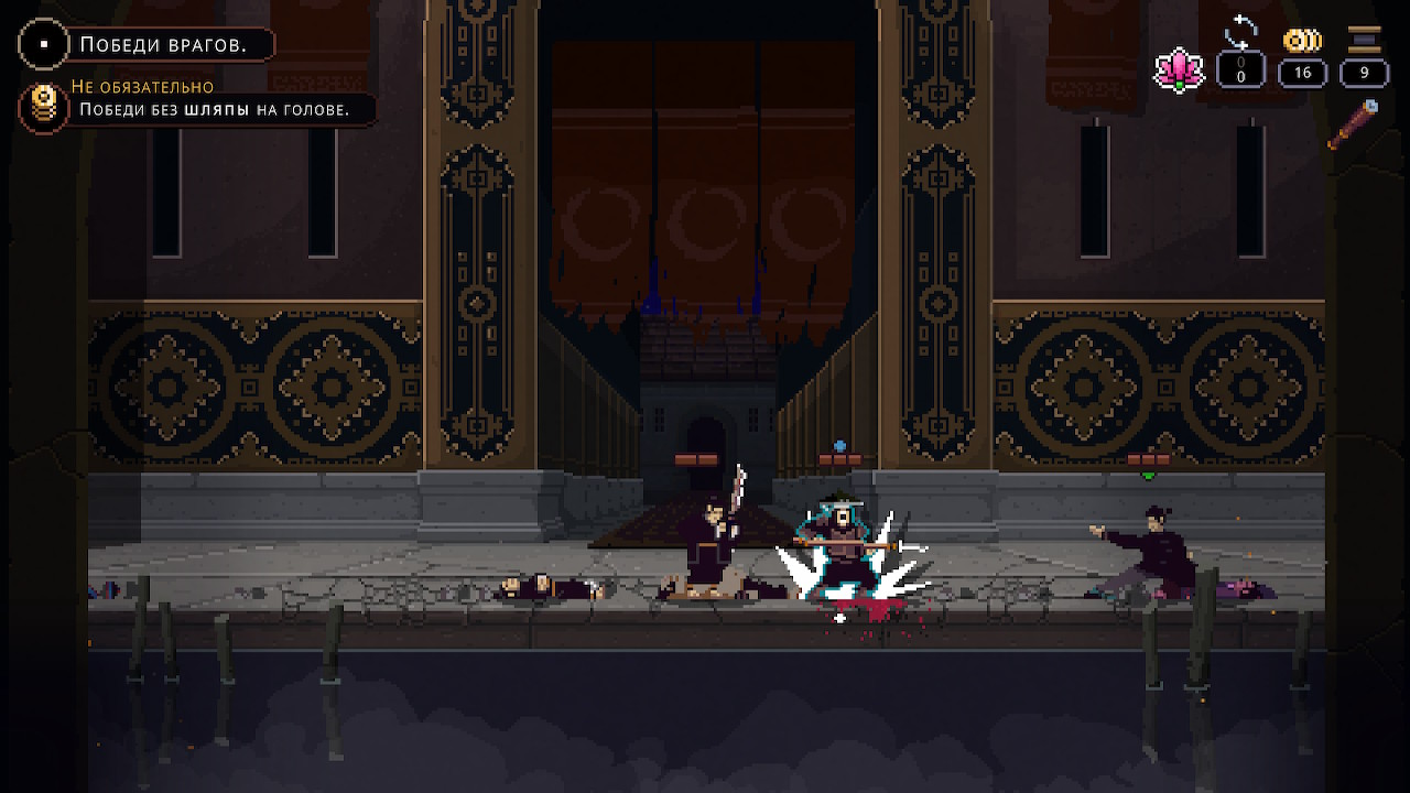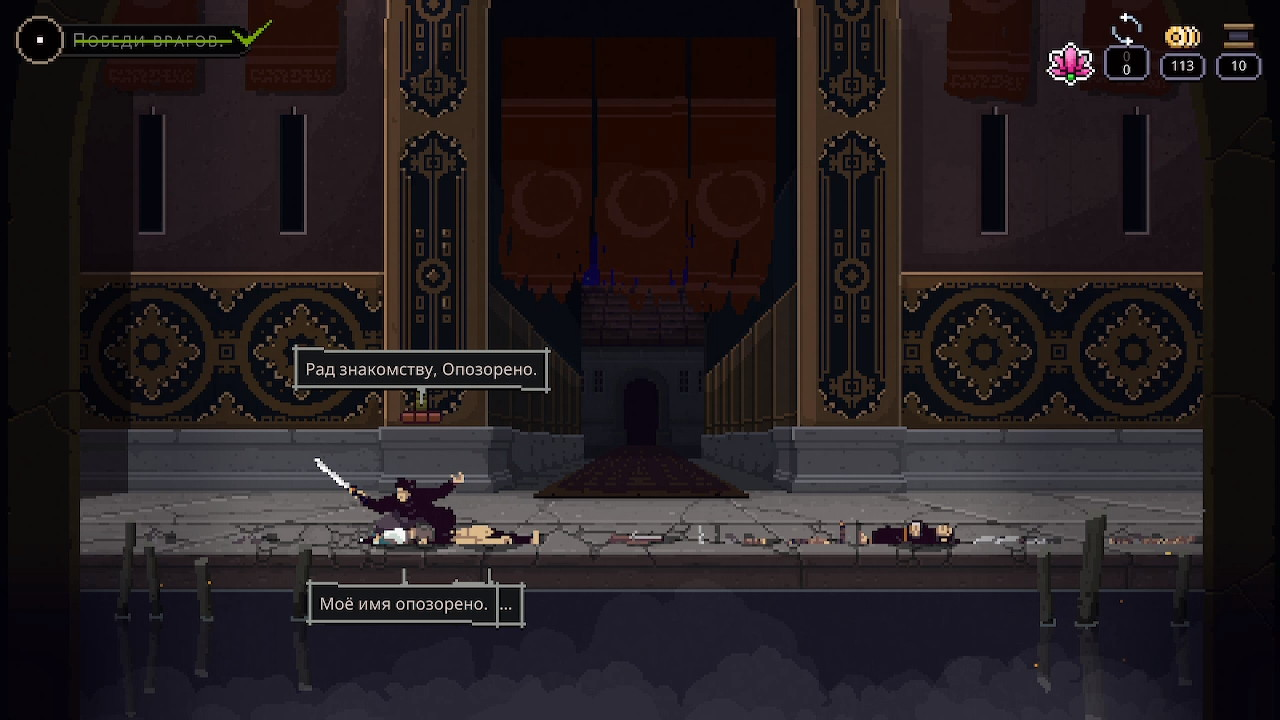 Оставаясь обок с тиктоковой молодежью каждый уровень в Переднебить длится всего пяток секунд. Однако насыщенность их зашкаливает. Авторы ставят перед нами задачу не просто выйти победителем но найти самый оптимальный путь для разрешения конфликта. Каждую сечу вы крутите в чертогах разума главного героя бесчисленное количество раз, пробуя различные комбинации для одной единственной но идеальной попытки. И так покуда в один момент бой не перетекает в вашу собственную голову и для того чтобы предугадать исход следующей конфронтации вам уже не понадобится обращаться ко внутриигровой механике. В этот момент можно смело цитировать Нео, флексить тем что вы осознали Кунг-Фу и запускать финал этой истории... Стоп. Опять не то.