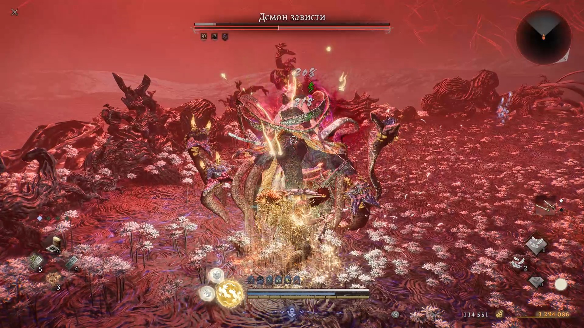Удобно, что с самого начала есть бесконечный предмет, который может возвращать к чекпойнту, тем самым позволяя избегать ненужной беготни туда-сюда. Местная валюта при смерти вся не пропадает, как в соулсах, тут система, похожая на Секиро, пропадает только часть (в зависимости от использумого ядра), но пропадает навсегда. Качать оружие и печати можно прямо у чекпойнта, никаких кузнецов в игре нет.