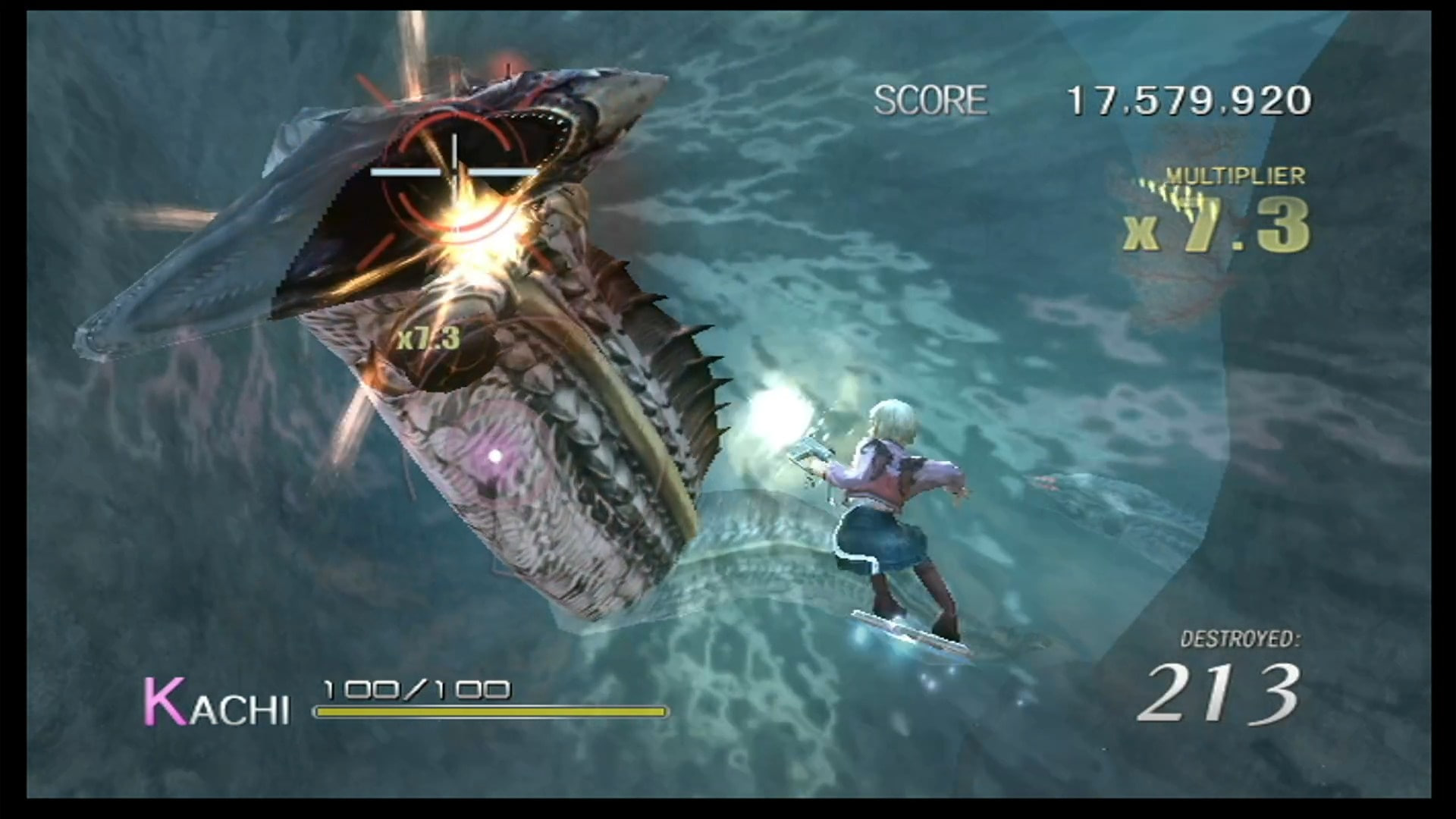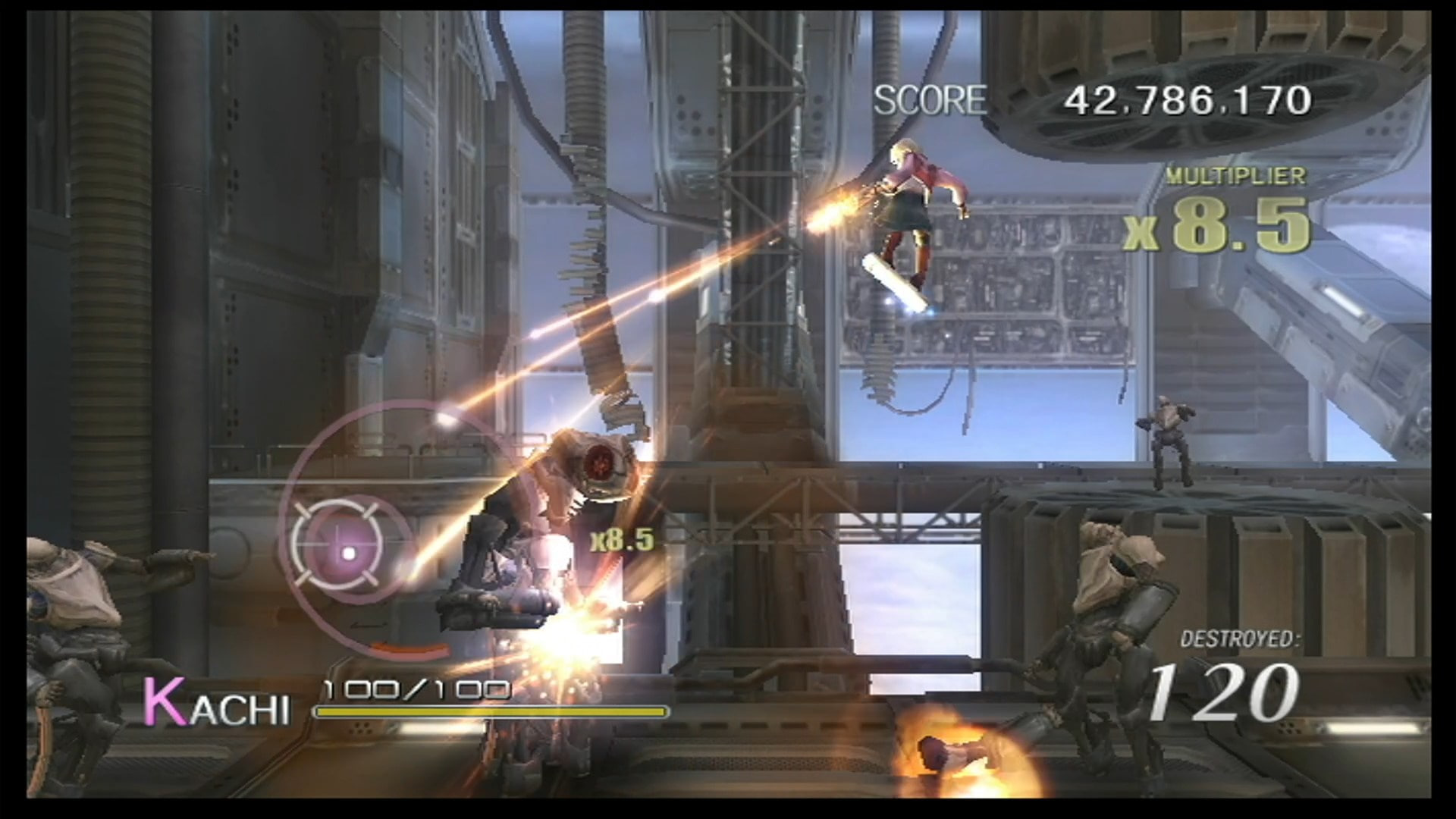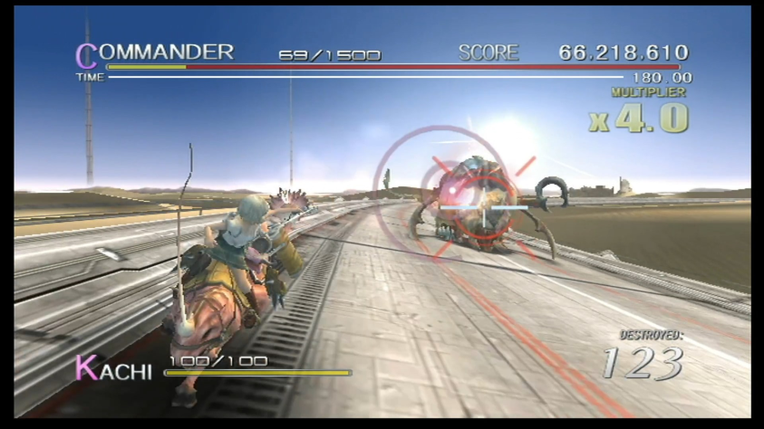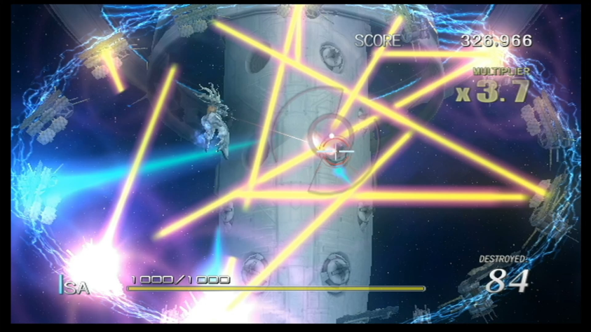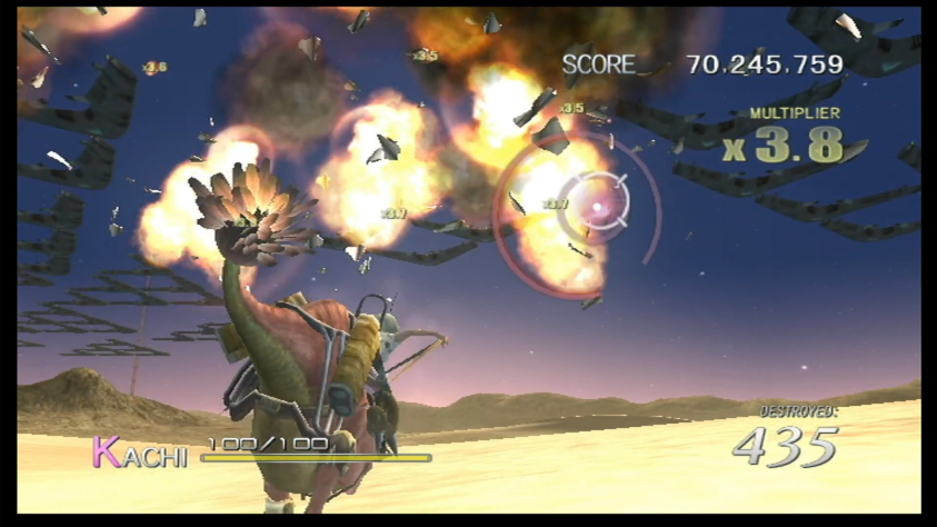 По части геймплея — это абсолютно невероятно крутой микс из всевозможных механик подобных рельсовых шутеров, где меняются перспектива, ракурсы, паттерны движения атак игрока и врагов, а в какой-то момент игра даже на пару раундов мутирует в недофайтинг, в следующий момент — в недоголоволомку, где нужно равномерно наносить урон, чтобы не уронить с хлипкой конструкции своего союзника!! Такого колоссального, невероятного количества разнообразия в поведении врагов и паттернов их уничтожения и не видел ну очень давно. Кто там говорил про 100 часов во всяких современных ААА-играх? Их оснвное геймплейное разнообразие едва покрывает 5-10% этой одной, недлинной, но сверхнасыщенной игры, если не брать в расчет мини-игры, которые вообще побочная вещь и не являются основным геймплеем.