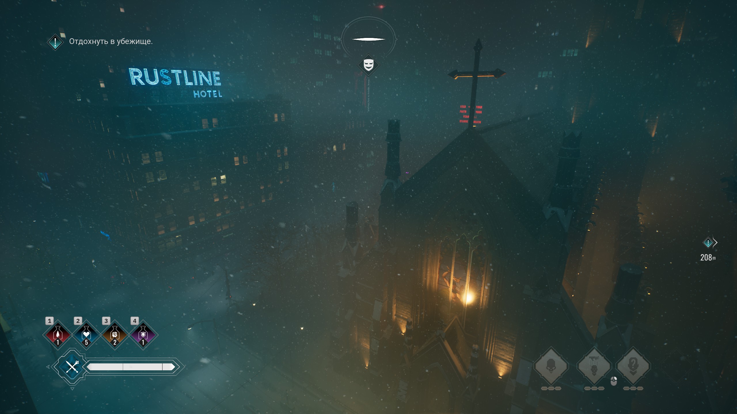 А вот что в игре очень неоднозначное, так это аудио-визуальная составляющая. Сама по себе картинка на глобальном плане стильная. Зимняя атмосфера, неон, ночной город. Сюжет погружает в пучину Камарильских разборок. Флэшбеки дают атмосферу нуарных детективов. Но проблема возникает когда ты смотришь на конкретные модельки. Они очень неравномерны по уровню графики. Часть моделек отличные, а часть это просто мазня из текстур. Особенно забавно выглядит шкаф с книгами в доме игрока. Ведь тут у него ты стоишь по 5 минут слушая радио-передачу, и часть корешков книг просто физически даже нечитаемы. Но нужный "вайб" игра даёт. И это радует. Плюс и Камарилья, и Инквизиция, и особенно Шабаш, тут представлены намного лучше чем в Bloodlines 1.