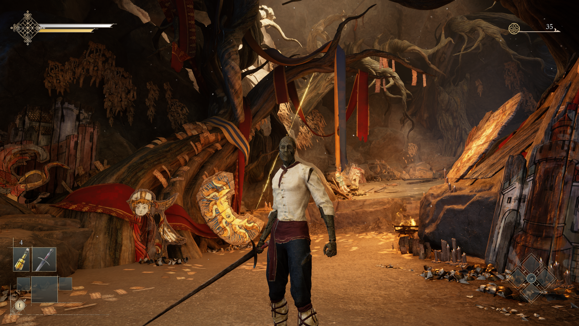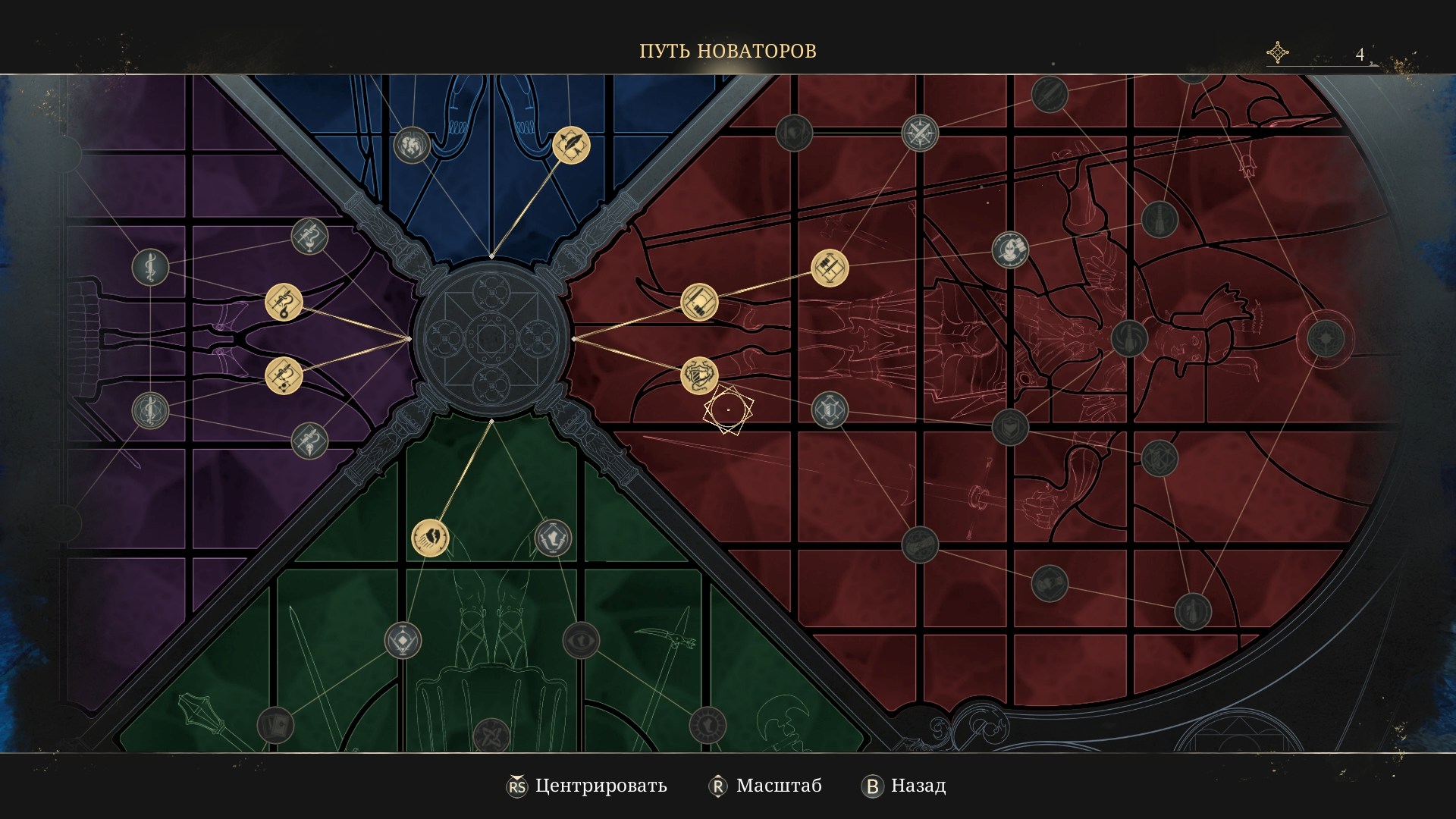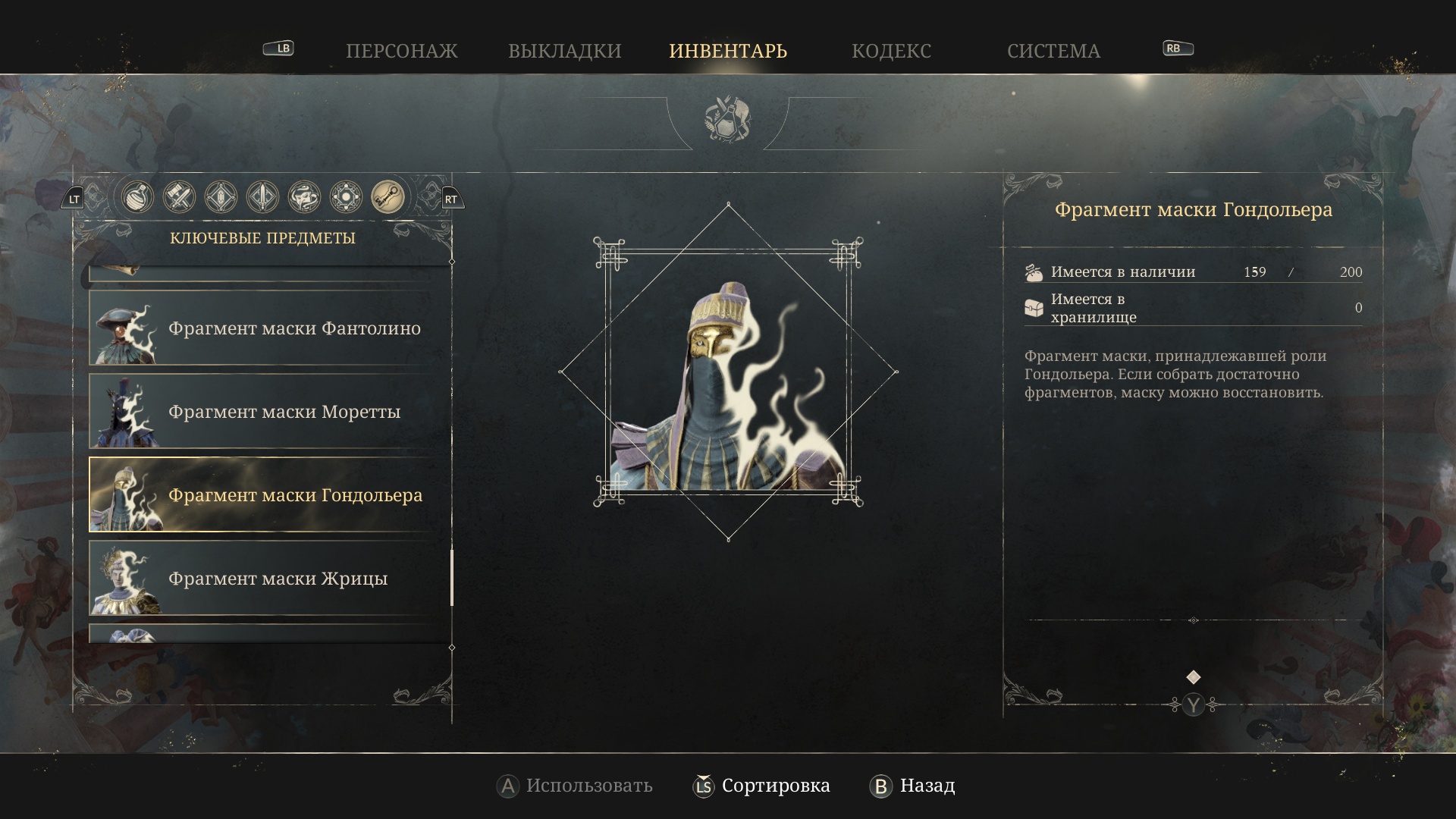 И, конечно же, в соответствии с сеттингом, вместо тривиальных доспехов, мы носим маски, дающие особые эффекты и аспекты, повышающие или понижающие характеристики. Система чем-то напоминает оболочки из Mortal Shell, но проработана гораздо глубже, так как здесь присутствует прокачка пассивных навыков, так называемый Путь Новаторов, разделённый на ветки Элементалиста, Бойца, Боевого Мага и Трикстера (ловкач/трюкач). Качать можно хоть все три разом, комбинируя разные навыки так, как вам хочется. Мы можем сделать сразу три разных билда (выкладки), чтобы быстро переключаться между ними прямо в бою, причём оружие и расходники у них тоже могут быть разные.