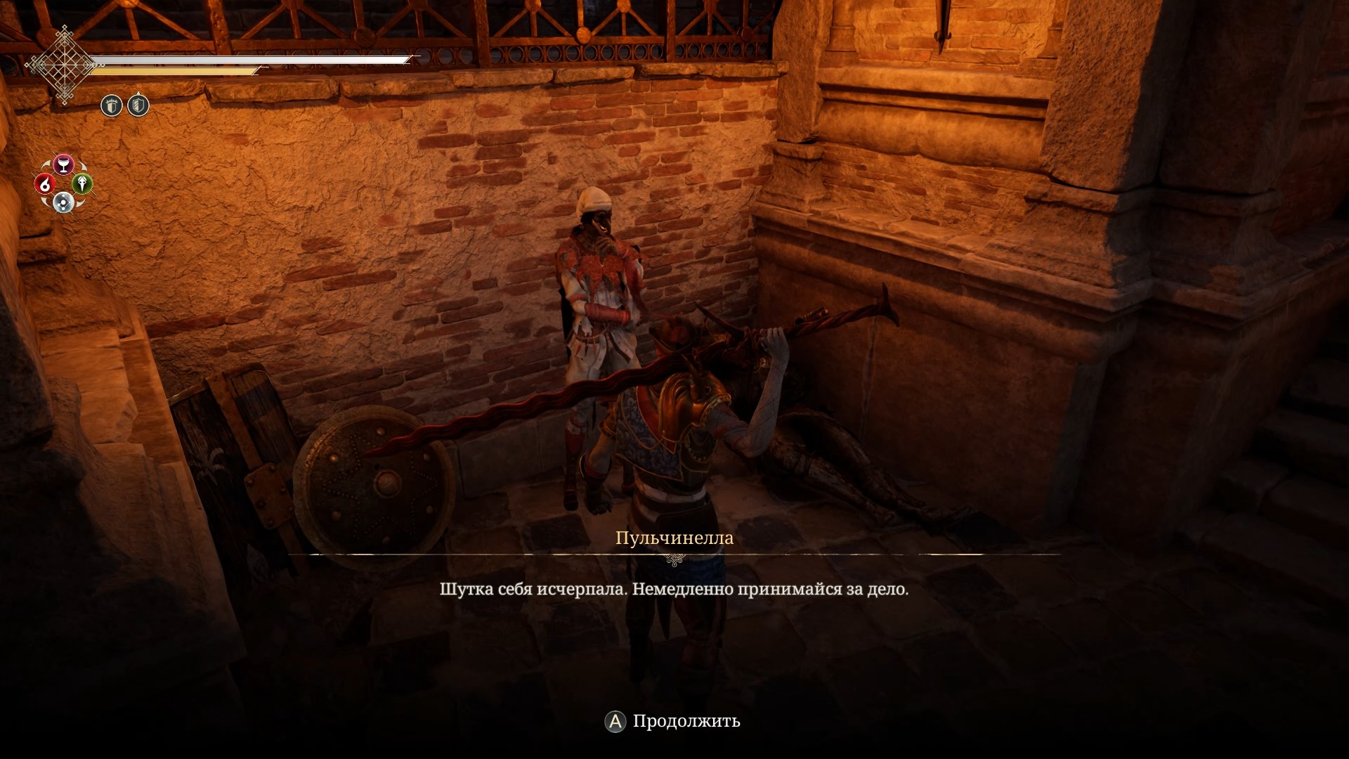 К слову, не уверен, что задания можно пройти без гайда, однако, возможно, если читать лор, автоматически добавляющийся во внутриигровую энциклопедию (да, благодаря этой фиче вам не обязательно штудировать описание каждого найденного носка), это всё же реализуемо. Зато вы никогда не перепутаете сюжетного босса с не обязательным, так как по игре вас будет вести Пульчинелла, если он брынчит на своей мандолине где-то неподалёку, значит босс 100% сюжетный.