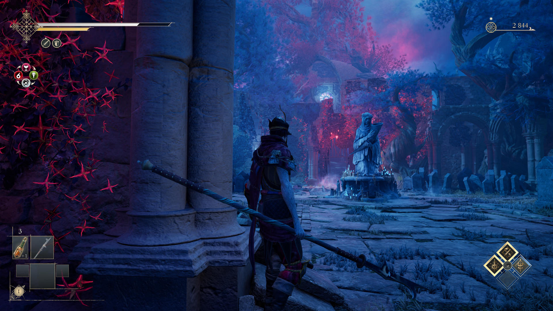 Если вы хотите проникнуться этой игрой прямо сейчас, но не желаете терпеть кучу косяков, то для вас подойдёт сюжетный режим. В нём персонаж получает меньше урона, мобы не такие жирные, да и душ (мемориа) дают заметно больше, хотя и в режиме soulslike недостатка в них нет. Не буду утверждать, так как не пробовал, но возможно режимы переключаются прямо во время игры (это не точно, ваще, совсем, абсолютно).