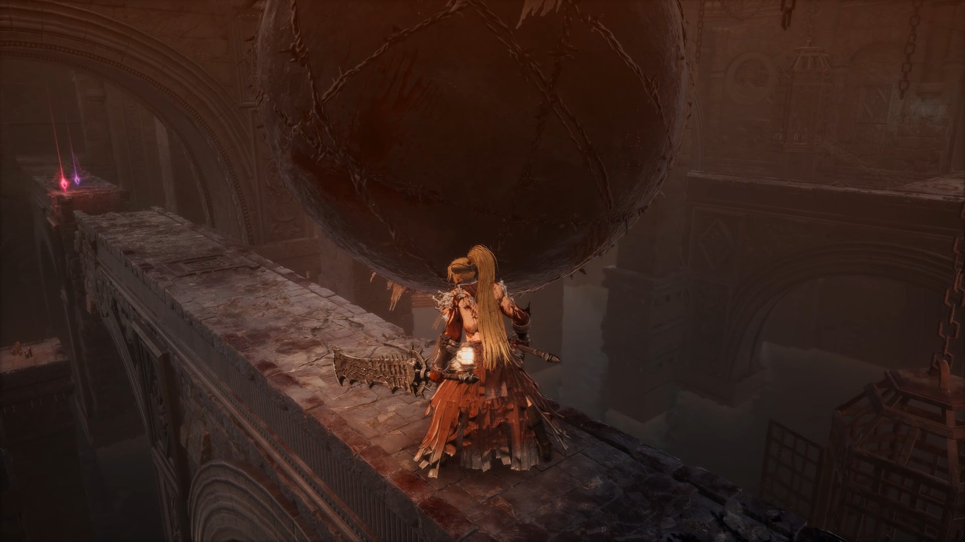 Есть попытки создать опасную ситуацию, когда тебя засовывают в аналог крыши из Анор Лондо. Адреналина никакого это не вызывает, так как упасть во время уклонения невозможно, а балки достаточно широкие, чтобы не думать о потенциальной возможности разбиться.