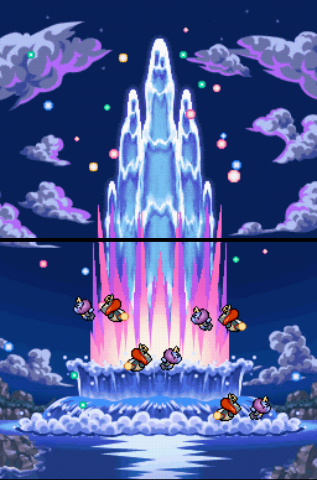 Но в другие моменты, игра может замолчать, и дать тебе насладится видом и музыкой, к счастью не смотря на возраст игры, её стиль всё так же приятен глазу, а на старом маленьком экранчике NDS все её шероховатости тем более и не видны.