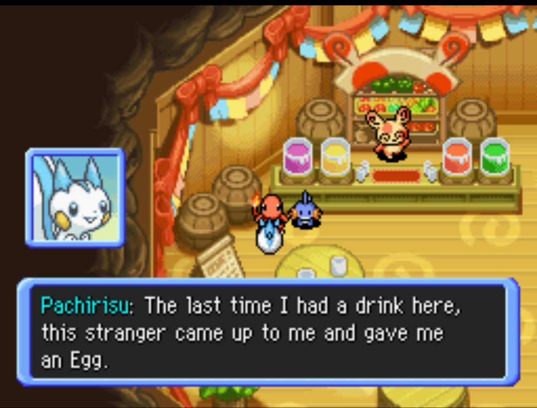 Ответ - Сюжет и музыка. За время прохождение основного сюжета, ты умудряешся сильно сблизиться с своим игровым напарником, и, собственно, своим же покемоном. Выполняя миссии в подземельях снова и снова, продвигаясь всё дальше и делая эту связь всё крепче, ты натурально и сквозь геймплей и диалоги ощущаешь рост вашей дружеской связи. Помимо этого диалоги, не смотря на свою простоту, заставляют тебя так же хорошо проникнуться и с окружающими тебя покемонами, правда чаще всего они существуют для создания простых и не очень комедийных ситуаций. В целом в игре ОЧЕНЬ много комедийно настроенного текста, из-за чего как раз, наверное на фоне контраста, более серьёзные темы ощущаются куда сильнее.