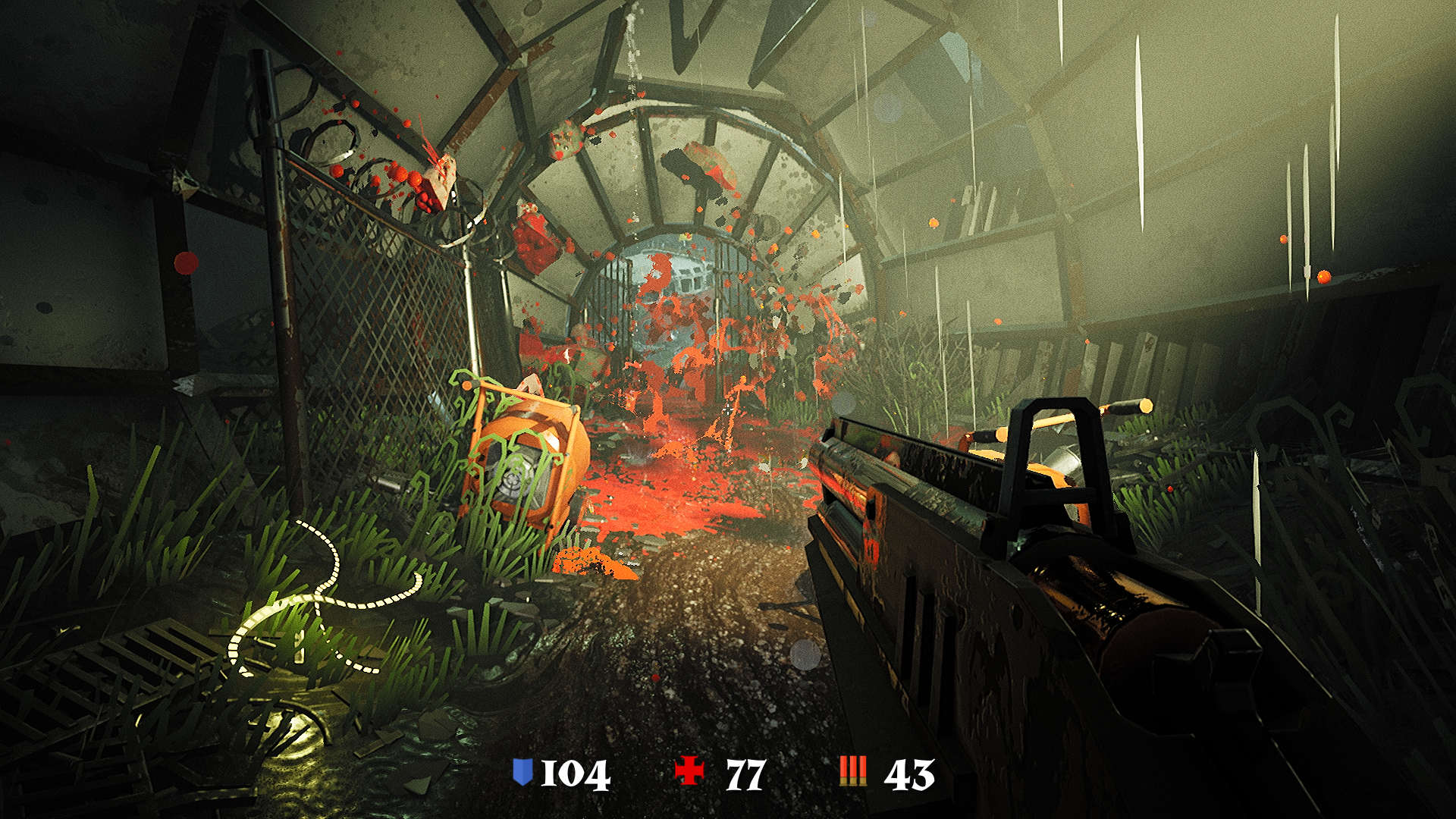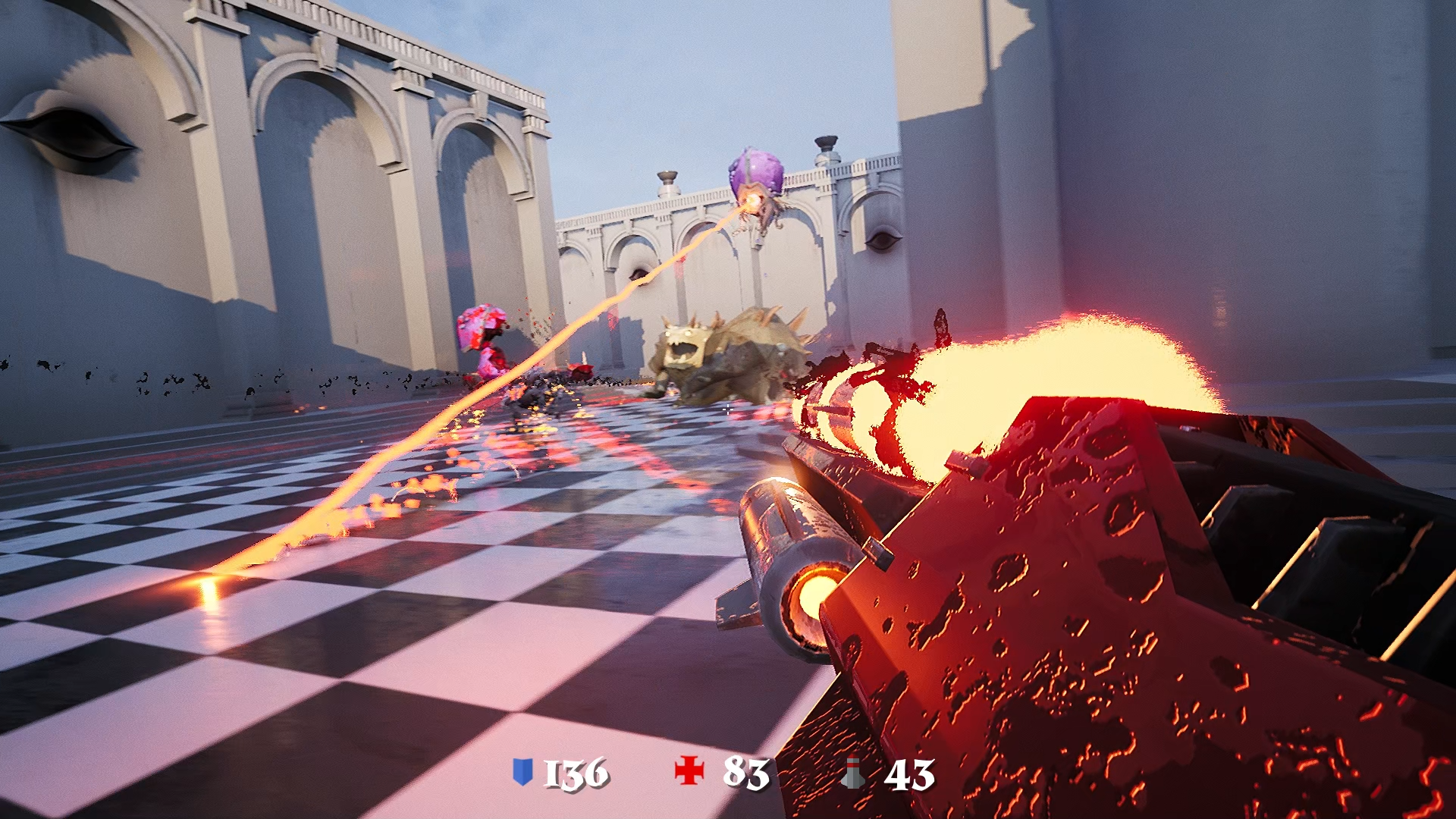 Стрельба и звуки убойные, враги по местным законам физического движка сочно разлетаются в разные стороны, раскидывая куски плоти и эффектно разбрызгивая потоки крови по всему окружению, а общий дизайн уровней выглядит минималистично, но местами донельзя привлекательно благодаря Unreal Engine 4, который даже на сегодняшний день выдаёт очень красивую картинку с отличной отзывчивостью и плавностью смены кадров на экране.