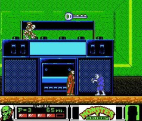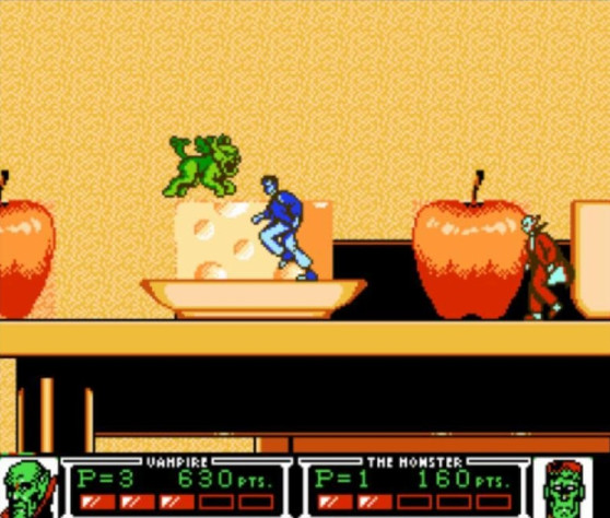 По сюжету — ты управляешь либо Вампиром, либо Монстром Франкенштейна (но в детстве я был уверен, что это Робин в странной шапке). Эти двое размером с ключ от входной двери бегают по кухне, по какой-то стройке и в каких-то казематах, чтобы остановить злодейских злодеев. Да, сюжет звучит как бред, потому что он и есть бред.