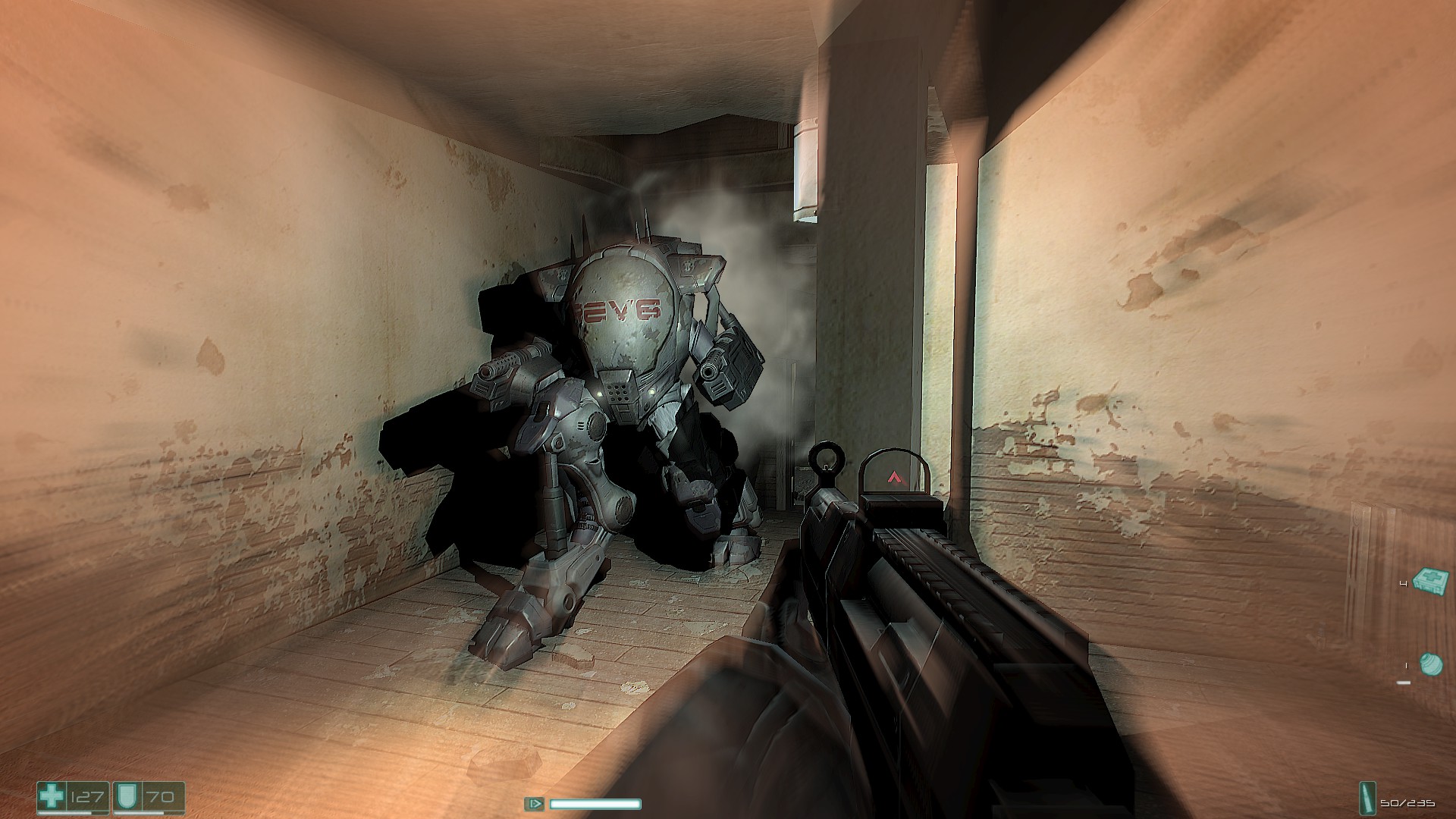 Во время прохождения «F.E.A.R.» ты постоянно ловишь себя на мысли в духе «Какого хрена здесь происходит?», и это крайне весомый показатель того, насколько грамотно проект развешивает сценарные крючки, цепляя игрока и мотивируя его пробиваться через череду напряжённых сражений и хоррор-сегментов к долгожданной развязке. Пожалуй, единственным минусом местного сценария является его подача. Игра не самым удачным образом распоряжается своими персонажами: лишь половина из них худо-бедно доносит до игрока хоть какую-то экспозицию, тогда как остальные большую часть времени шарахаются где-то за кадром. В результате значительную долю лора игрок вынужден собирать самостоятельно, выуживая информацию из ноутбуков и автоответчиков, щедро раскиданных по уровням.