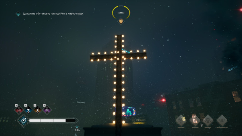 Кстати, про город. В игре он мёртвый: пешеходы лениво слоняются туда-сюда, а про движение автотранспорта в городе можно забыть. При этом в городе присутсвует вертикальность, а исследовать город заставляет поиск крестов/графити и доп квесты. По городу интересно предвигаться первые часов 5, а хождения из точки А в точку Б становится скучным.