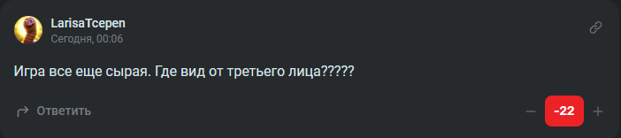 Даже претензии те же самые «Где вид от третьего лица?» =)