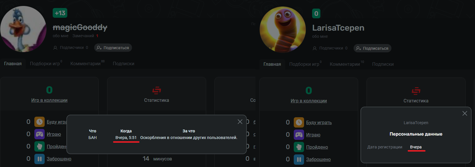 да, я тоже видел эту бредятину про «давнюю историю», и дату регистрации. но чет не обратил внимания вчера что Гуся забанили, сегодня вот решил проверить