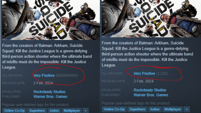 В обсуждениях Steam выдвигают другую версию: мол, Warner Bros. и Rocksteady просто удаляют негативные обзоры. Но на самом деле разработчики не могут удалять отзывы — они могут лишь отправить жалобу на рассмотрение модераторам Steam. А доказательств того, что Valve манипулирует отзывами в пользу разработчиков, пока не было.