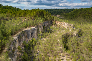 Я искал, у всех отвесных скал какое никакое подножие есть, я находил скалы без склона только у водоёмов.