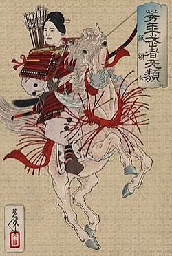 Одно из первых упоминаний женщин-самураев есть еще в 13 веке, гравюру прилагаю. Это 半額御前