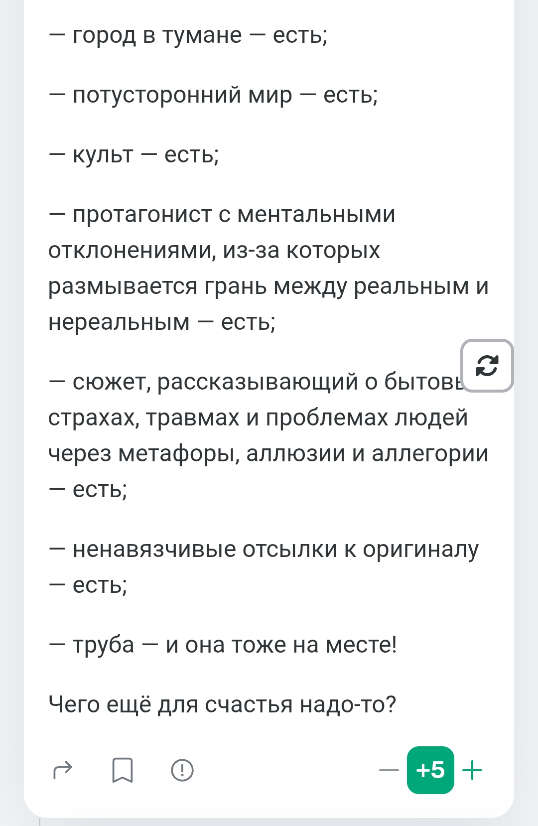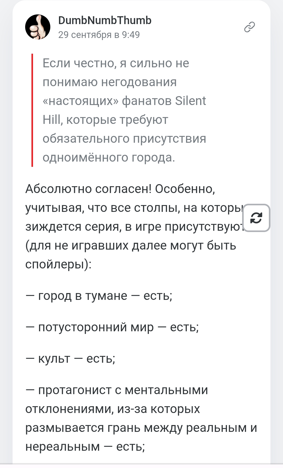 Я просто скопирую этот комментарий. И причëм тут прокачка с билдами. Если в SH F можно прокачать здоровье и повесить на себя амулетик с пассивкой, то это уже билдостроение? Это вроде не SMTV. Может, ещë и в RE4 есть билдостроение, где надо брелоки на кейс вешать?
