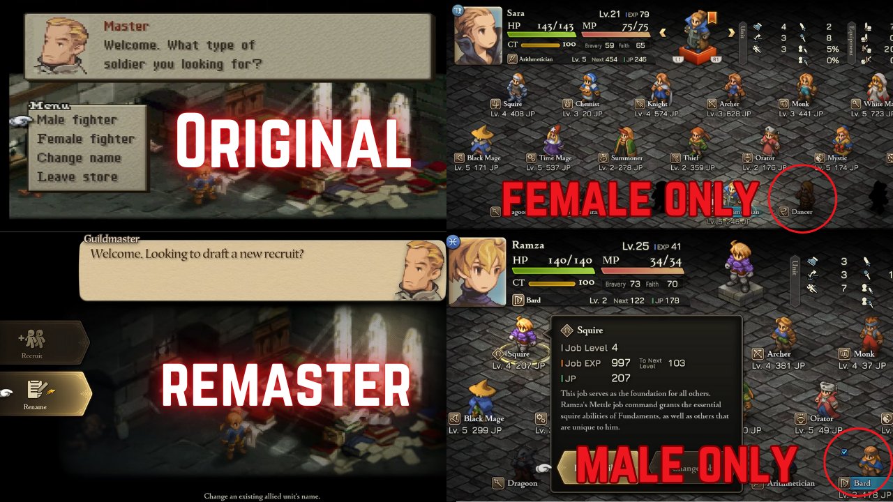 В ремастере (нижняя левая) при нажатии кнопки рекрут открывается пул персонажей, м и ж вместе взятых, из которого ты выбираешь понравившегося.