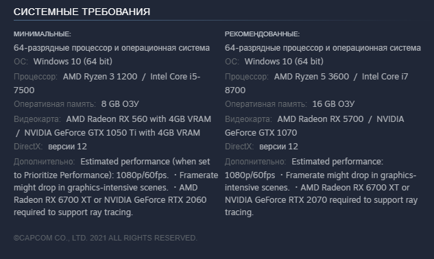 Но злые Capcom написали рекомендуемые требования для средних настроек графики, в разрешении 360p, с производительностью 24fps (всё равно больше кол-во кадров человеческий глаз не улавливает), чтобы словить хейта на релизе игры.