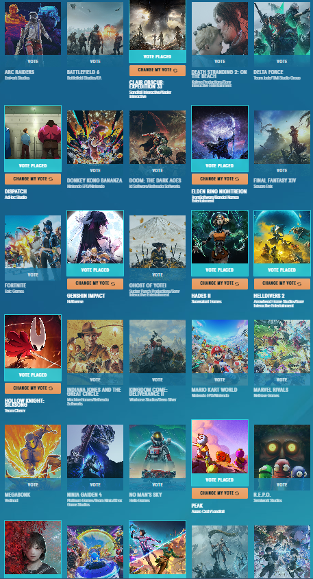 Организатор The Game Awards Джефф Кили (Geoff Keighley) объявил участников народного голосования за лучшую игру года. В категорию «Голос игроков» вошли 30 номинантов.