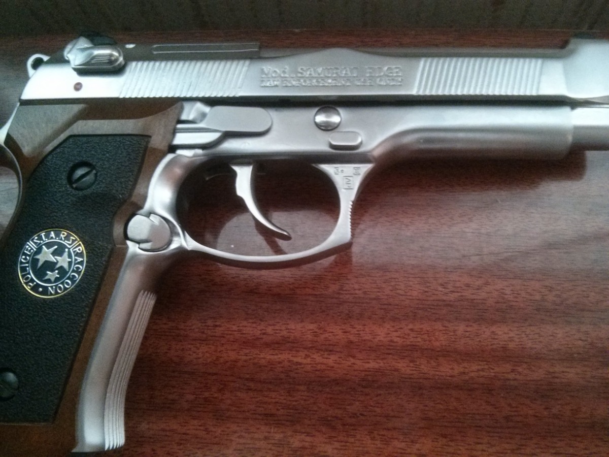 Beretta 92FS Samurai Edge Silver. Официальный страйкбольный привод от Японской фирмы Tokyo Marui. Купил давненько, но доволен до сих пор.