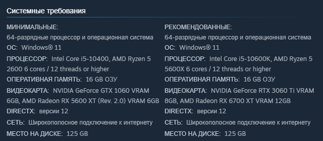 Давно известно,что эти требования очень часто не соответствуют действительности. Как пример RX 5600 XT идёт по производительности на уровне RTX 2060. А здесь она указана в паре GTX 1060, как говорится комментарии излишни.